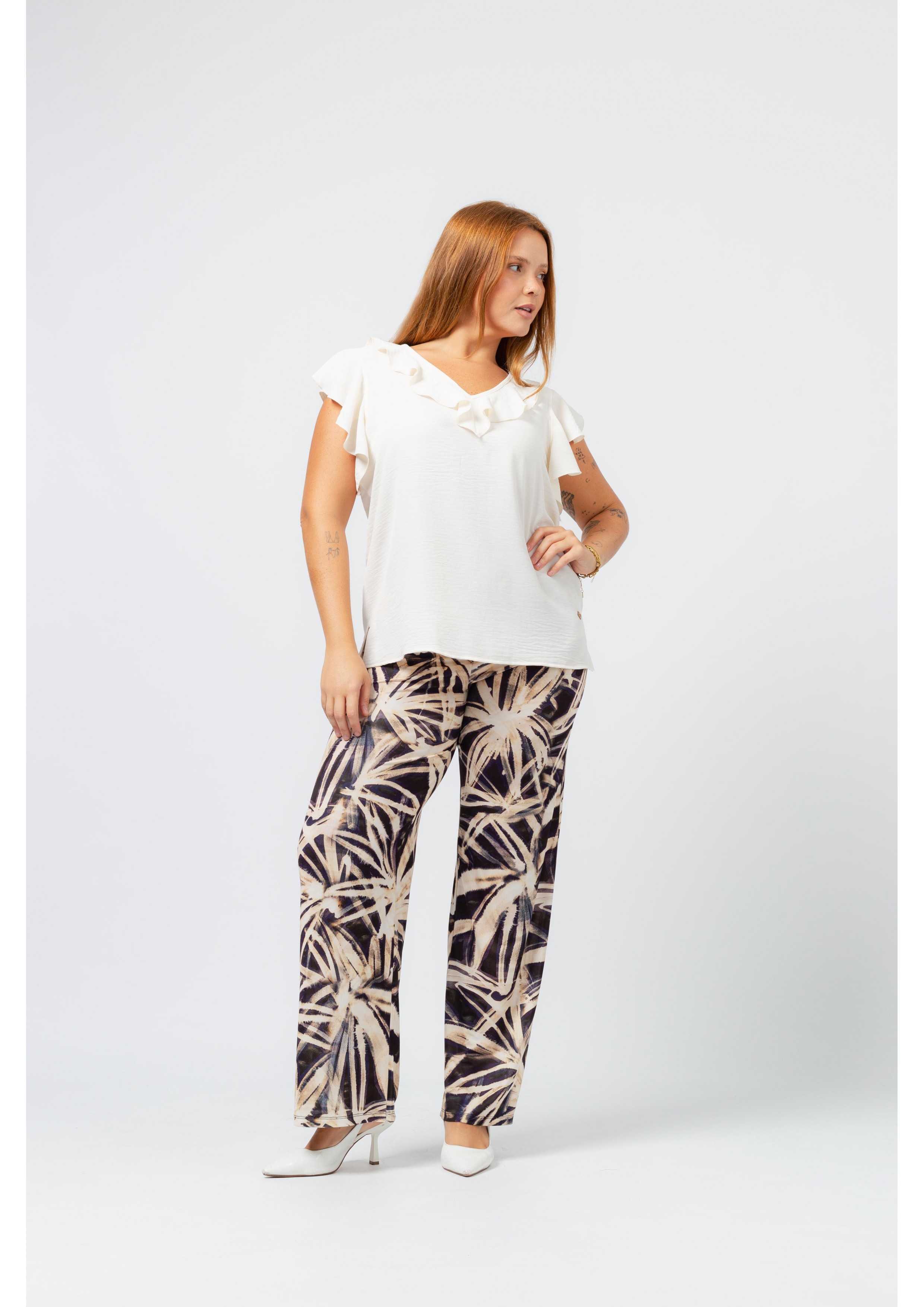 Pantalon en maille imprimée, élastique à la taille recouvert. Coupe droite. Collection : Printemps Été Disponible en Tailles Grandes Produit de conception et fabrication propre. Nous sommes une marque de confection de vêtements avec plus de 50 ans d'expérience Modèle : Taille 1,70 m et porte la taille XL. Composition : 94% Polyester 6% Élasthanne