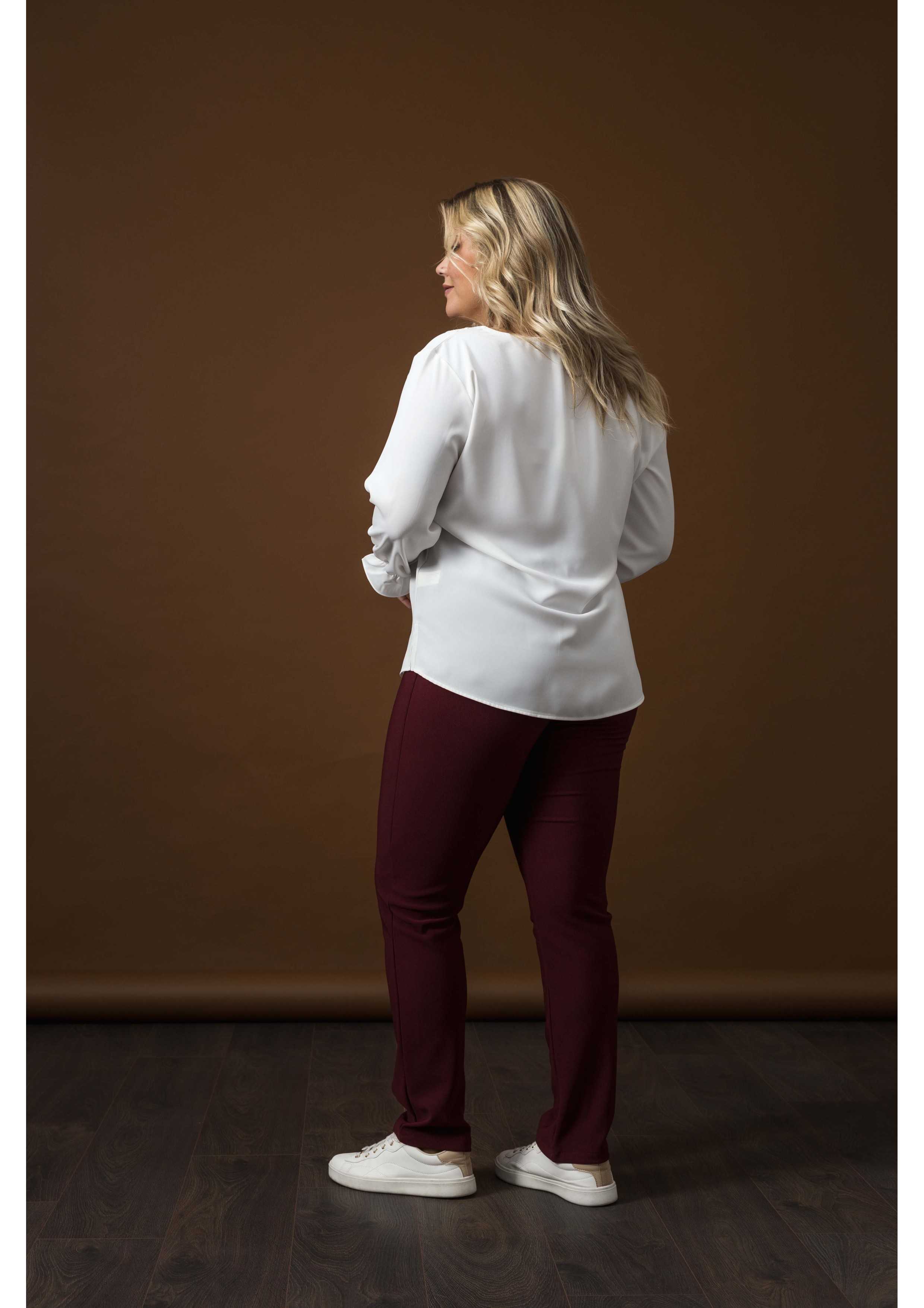 Pantalon en jersey uni, élastique à la taille, coupe à l'avant avec surpiqûre recouverte. Collection : Automne Hiver Modèle : Hauteur 1,70 m et porte la taille 2XL. |