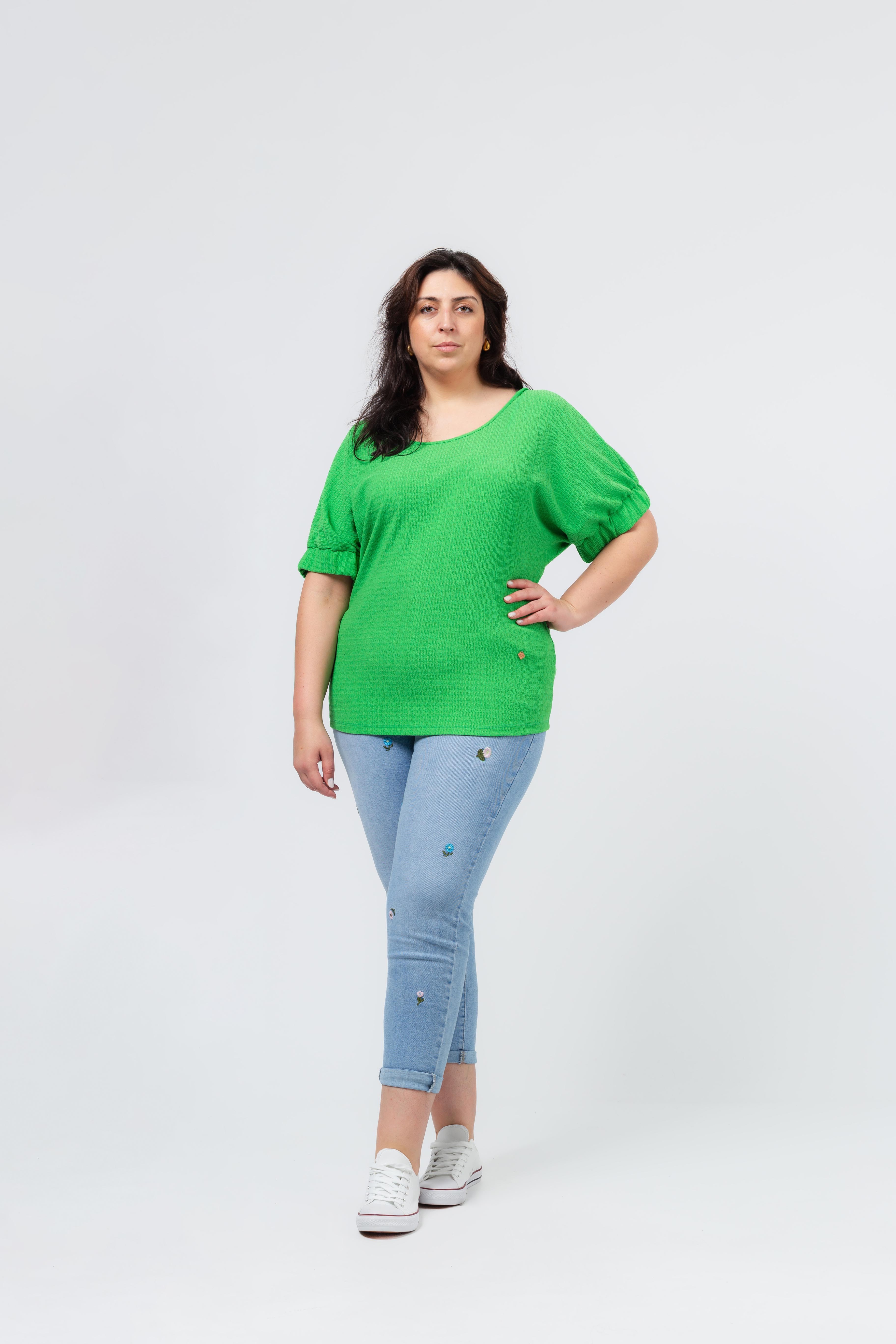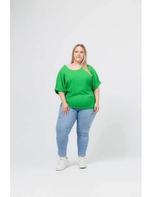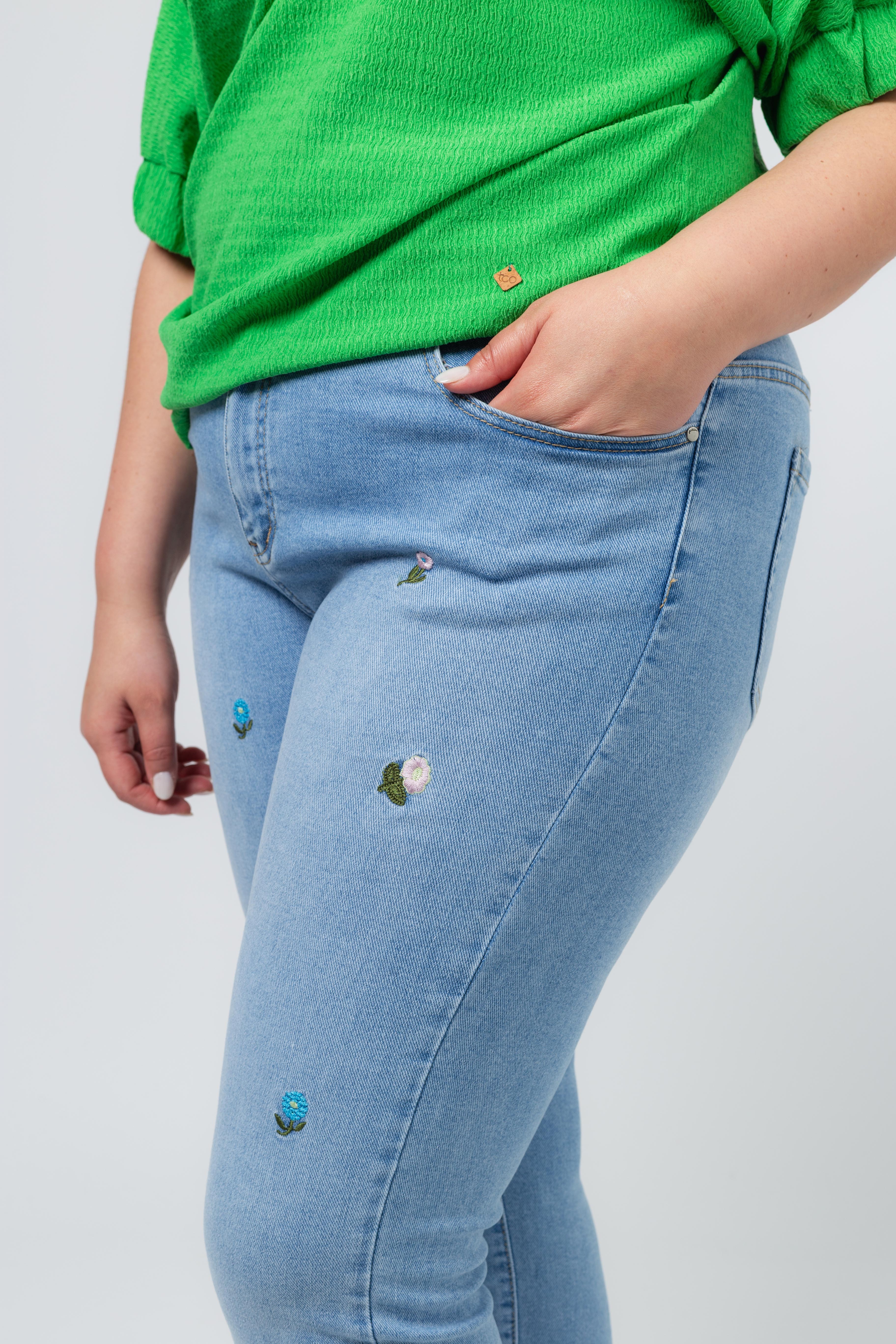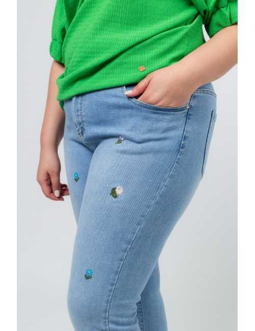 M120N0011 - Calça de ganga com bordado Coleção Primavera Verão Tamanhos Grandes