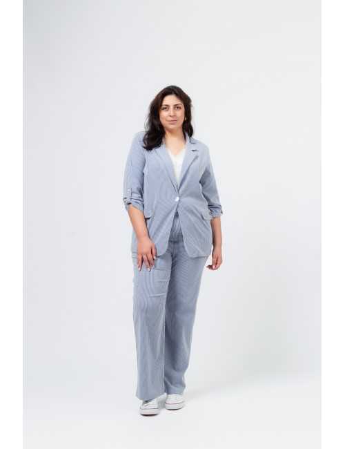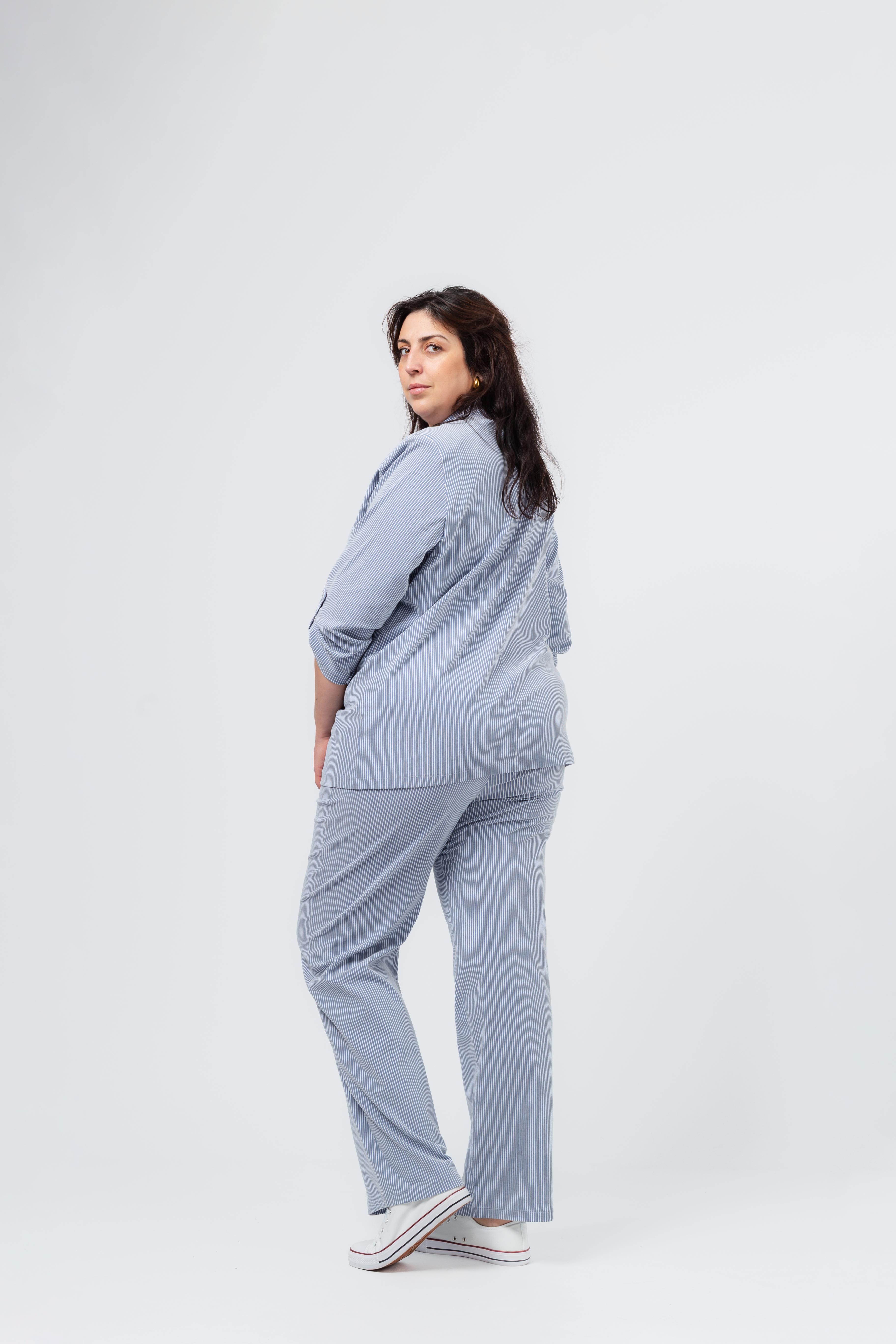 Pantalon en tissu à rayures verticales. Élastique à la taille | Collection : Printemps Été | Modèle : Taille 1,70 m et porte la taille 2XL