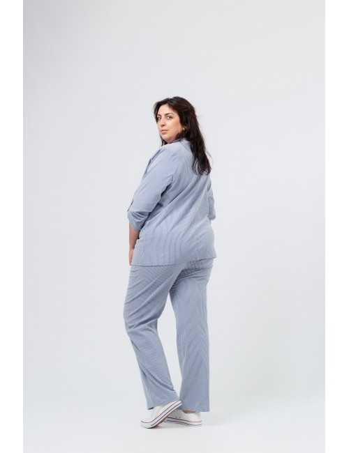 Pantalon en tissu à rayures verticales. Élastique à la taille Collection : Printemps Été Disponible en Grandes Tailles Produit conçu et fabriqué par nos soins. Nous sommes une marque de confection de vêtements avec plus de 50 ans d'expérience Modèle : Taille 1,70 m et porte la taille 2XL. Composition : 57% Polyester 40% Viscose 3% Élasthanne