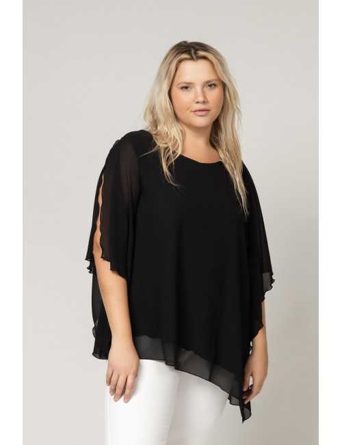Tunique en tissu uni fluide, manches 3/4 avec fente, légèrement évasée avec pointe latérale. Collection : Printemps Été Disponible en Grandes Tailles Produit de design et de fabrication propres. Nous sommes une marque de confection de vêtements avec plus de 50 ans d'expérience. Modèle : Taille 1,70 m et porte la taille 2XL. Composition : Extérieur 100 % Polyester / Doublure : 94 % Polyester 6 % Élasthanne