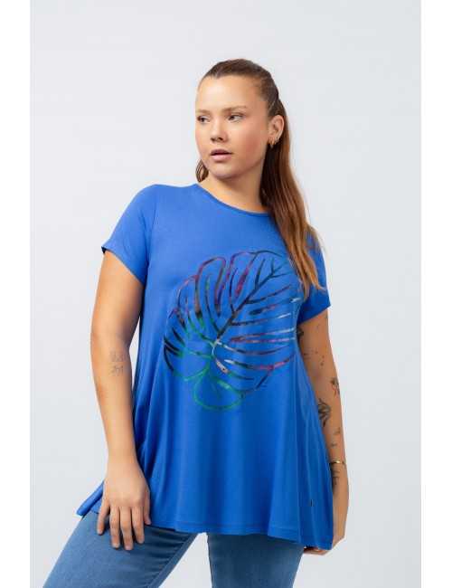 Tunique en maille unie, manches longues, application d'une feuille en découpe laser, col rond, modèle évasé, découpe au dos. Collection : Automne Hiver Disponible en Tailles Grandes Produit de design et de fabrication propre. Nous sommes une marque de confection de vêtements avec plus de 50 ans d'expérience Modèle : Taille 1,70 m et porte la taille 2XL, en blanc. Modèle : Taille 1,67 m et porte la taille G, en bleu. Composition : 94% Viscose 6% Élasthanne