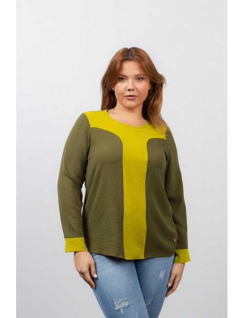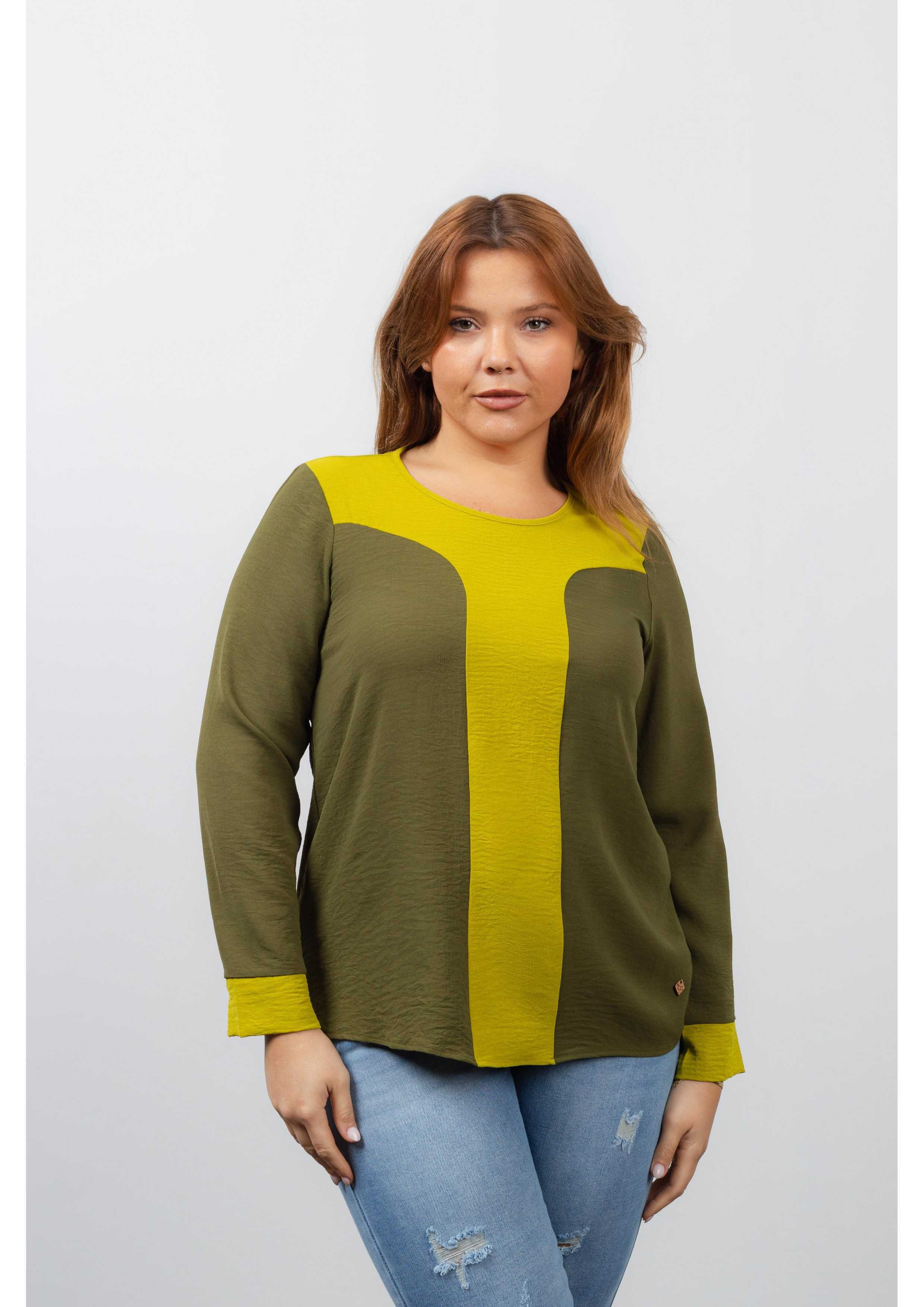 Tunique en tissu uni, avec un contraste à l'avant, un dos dégagé et des poignets. Collection : Automne Hiver Disponible en Grandes Tailles Produit de conception et de fabrication propres. Nous sommes une marque de confection de vêtements avec plus de 50 ans d'expérience Modèle : Taille 1,70 m et porte la taille 2XL. Composition : 100% Polyester