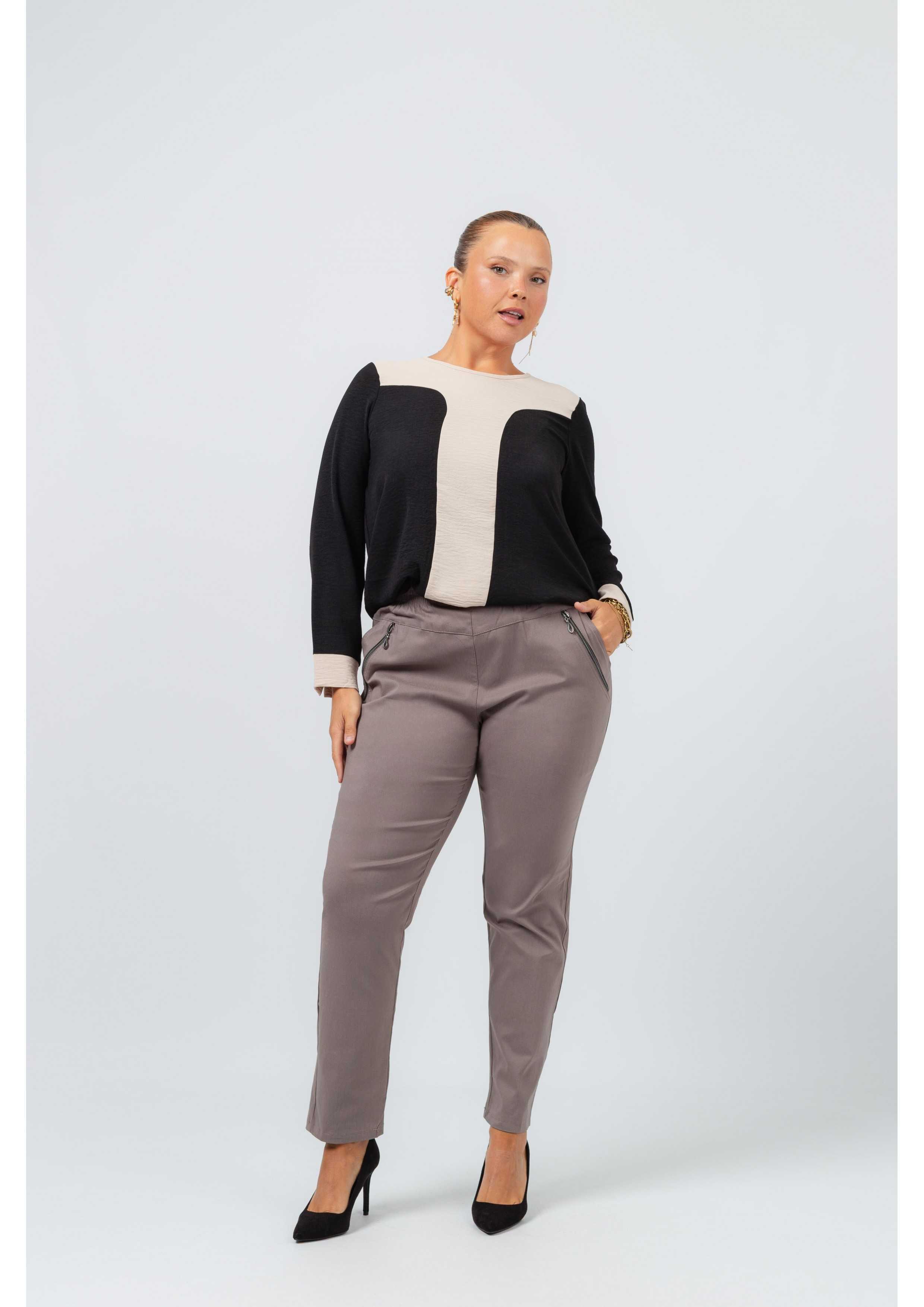 Tunique en tissu uni, avec un contraste à l'avant, un dos dégagé et des poignets | Collection : Automne Hiver | Modèle : Taille 1,70 m et porte la taille 2XL.