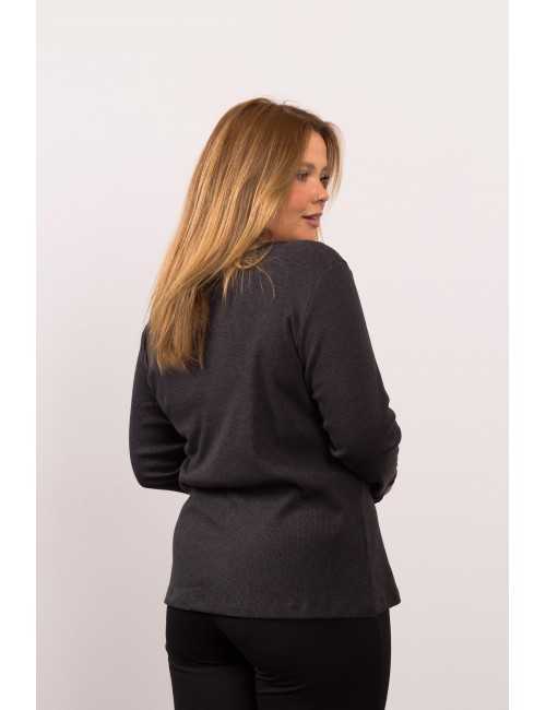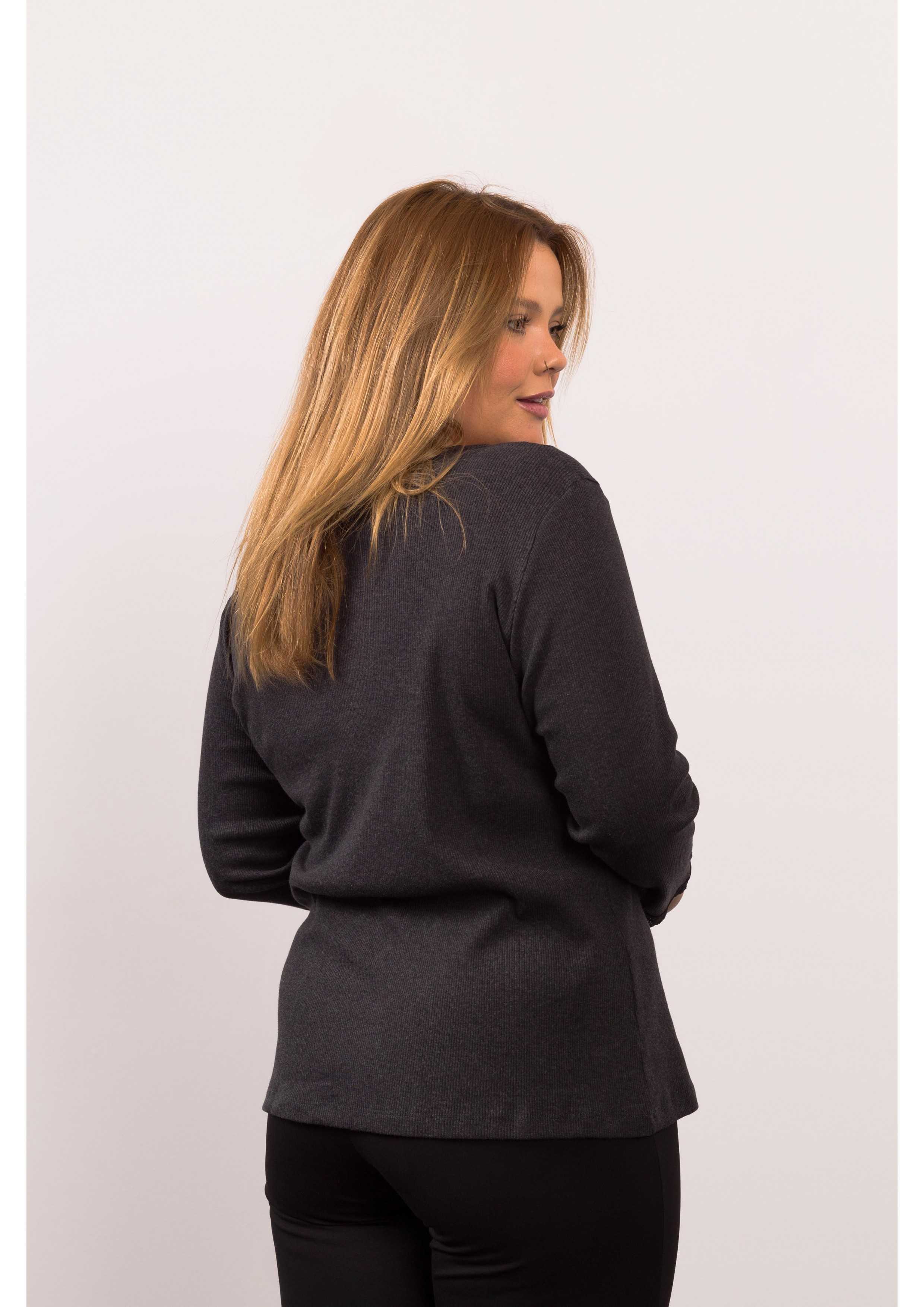 Pull en maille rib lisse. Manche longue décolleté en V. Dentelle noire aux poignets et au décolleté. Collection : Automne Hiver Disponible en Grandes Tailles Produit de conception et de fabrication propre. Nous sommes une marque de confection de vêtements avec plus de 50 ans d'expérience Modèle : Taille 1,70 m et porte la taille 2XL. Composition : 95% Coton 5% Élasthanne