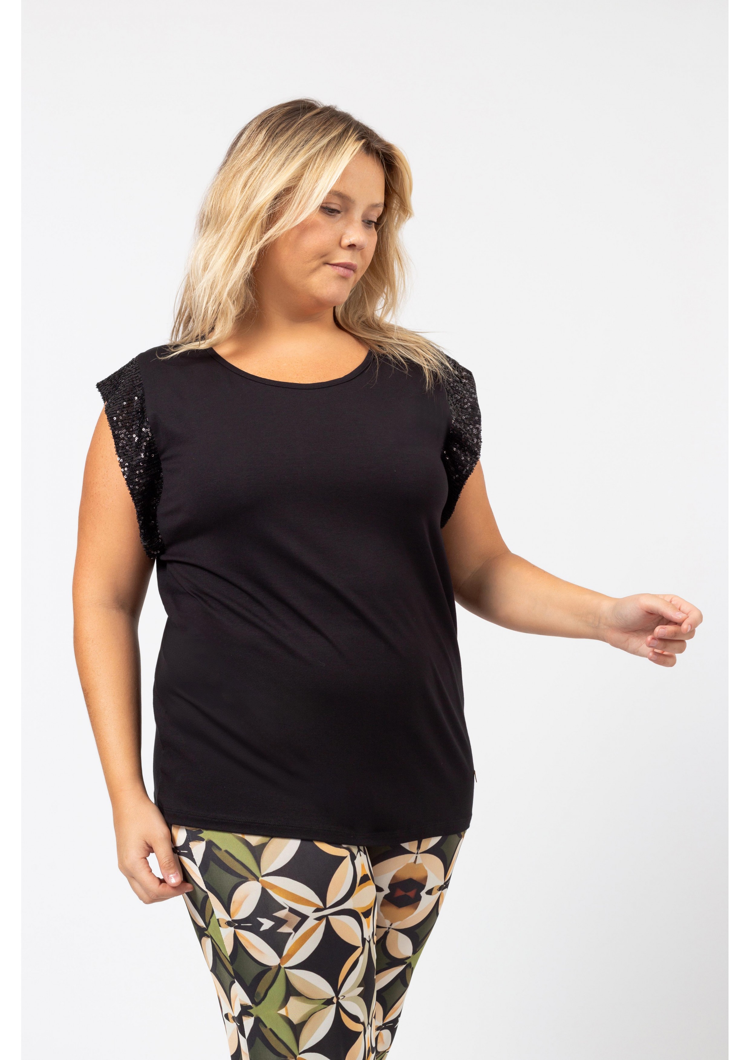 Pull en maille unie, épaulettes en paillettes, décolleté rond. Collection : Printemps Été Disponible en Grandes Tailles Produit de conception et de fabrication propre. Nous sommes une marque de confection de vêtements avec plus de 50 ans d'expérience. Modèle : Taille 1,65m et porte la taille 3XL, en vert. Modèle : Taille 1,70m et porte la taille 2XL, en rose et noir. Composition : Maille unie : 94% Viscose 5% Élasthanne | Brillance : 93% Polyester 7% Élasthanne