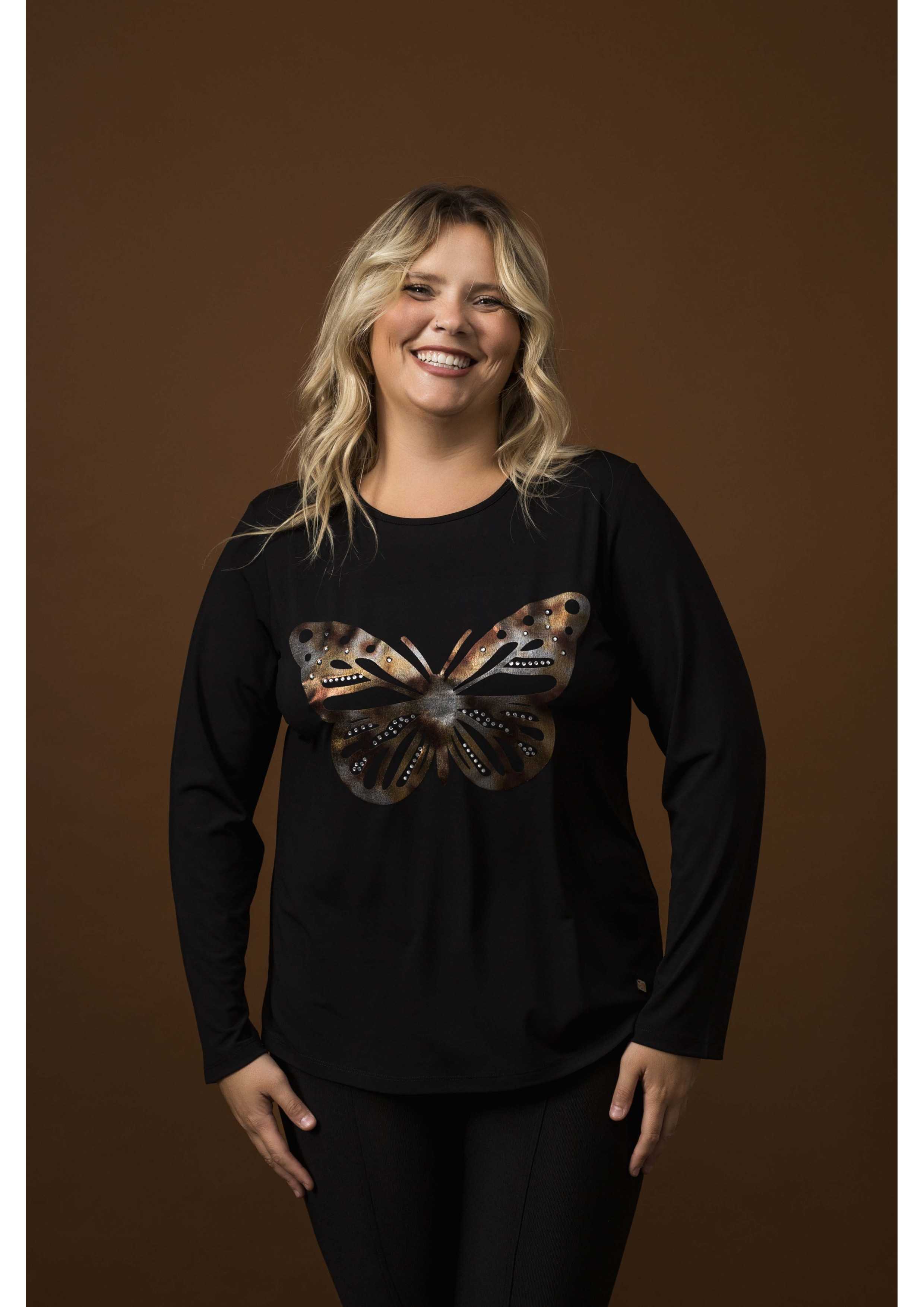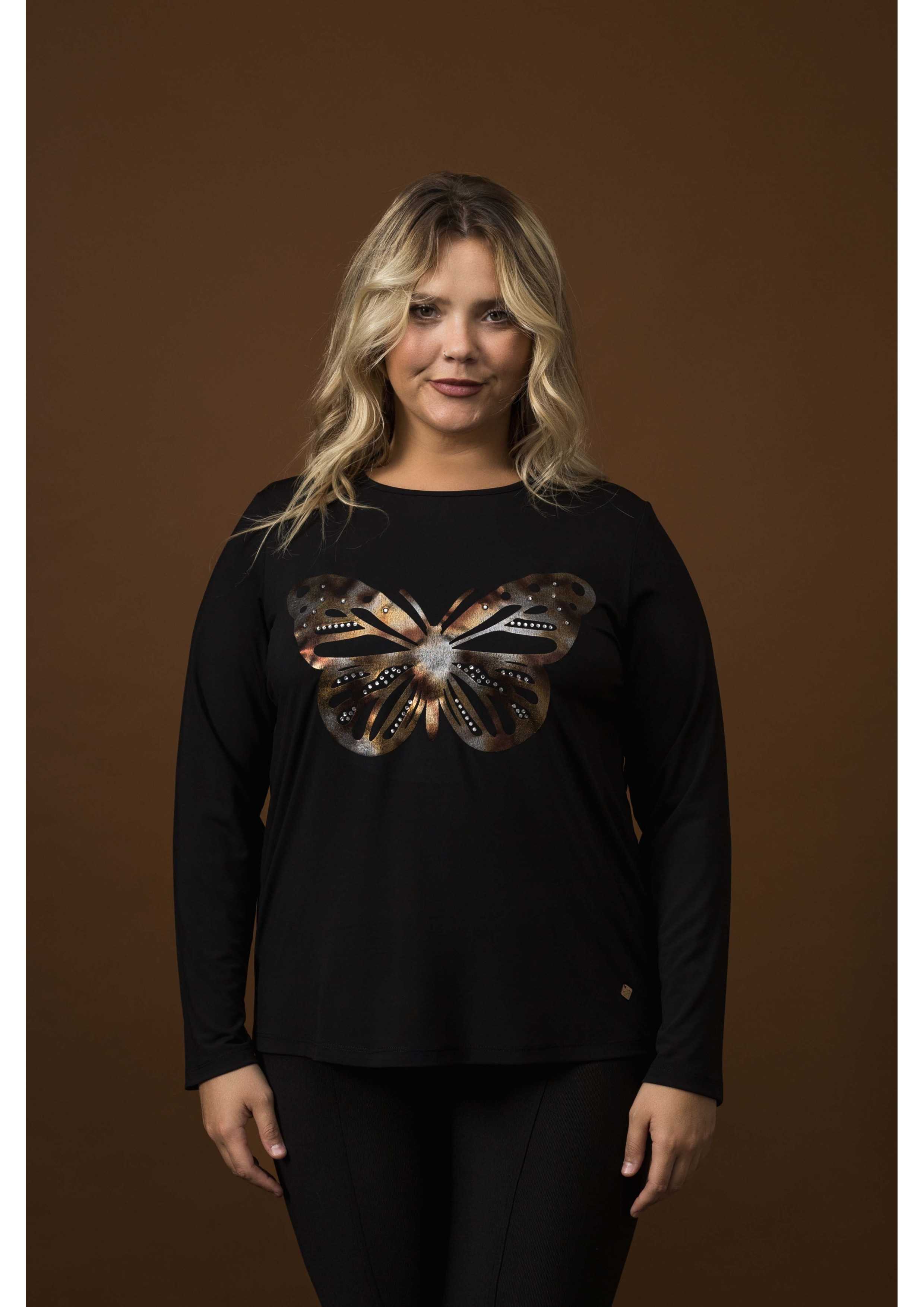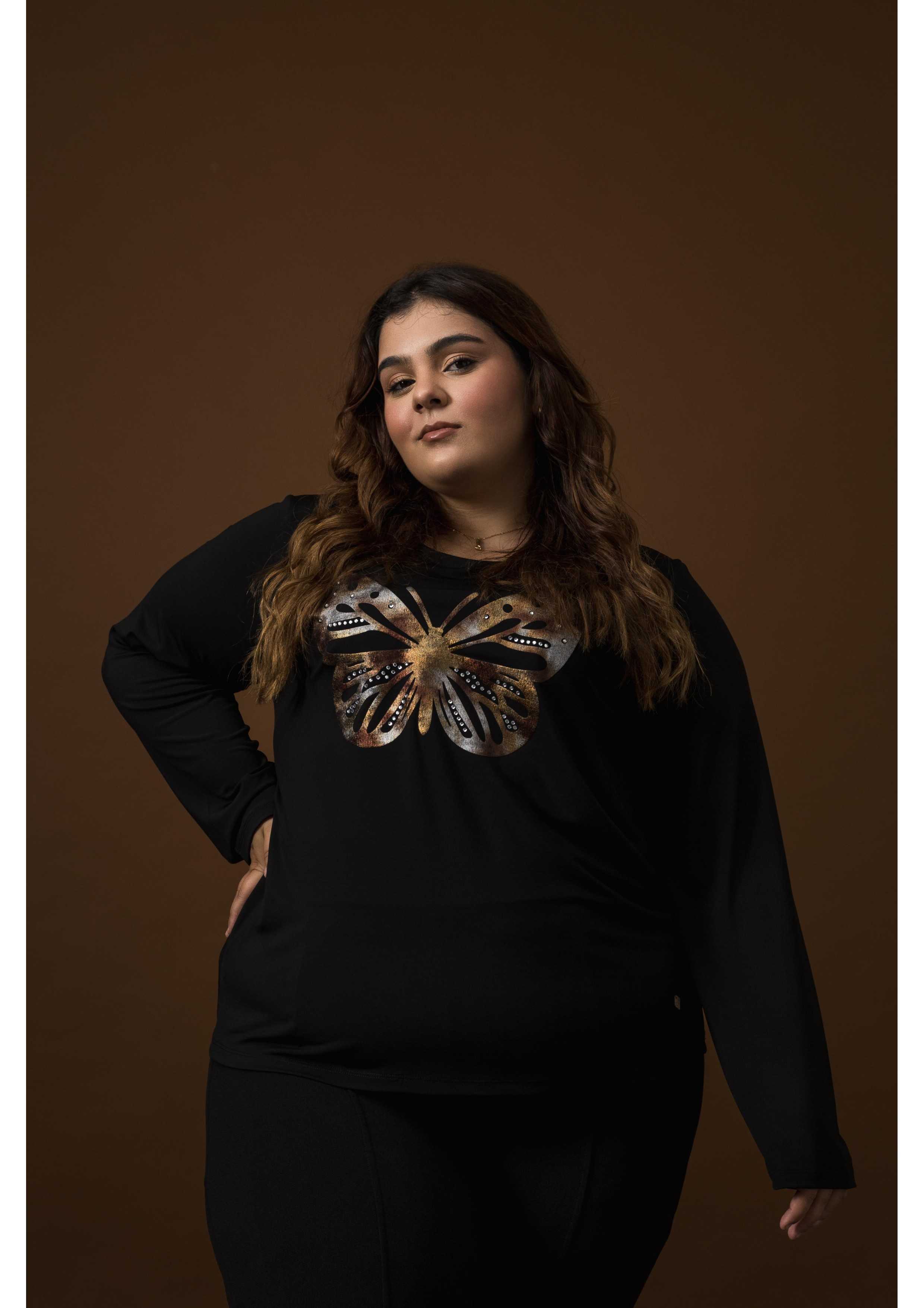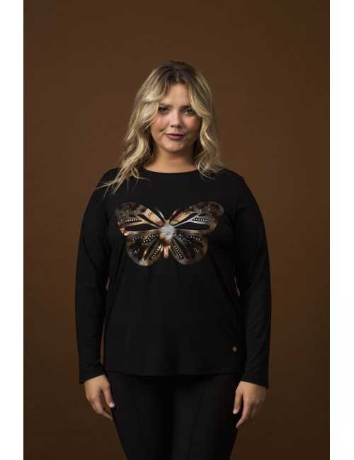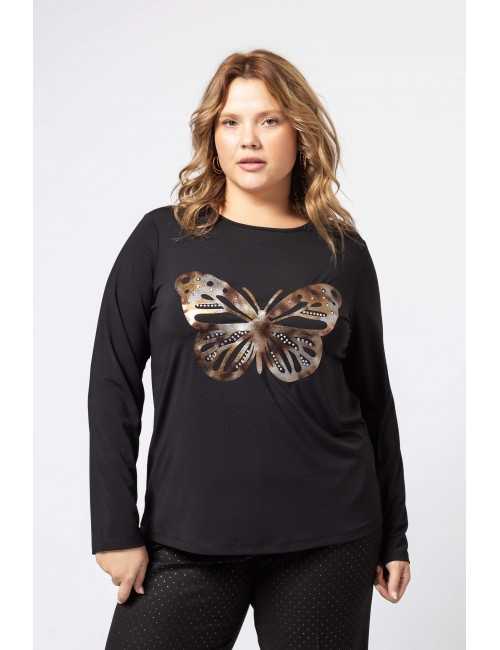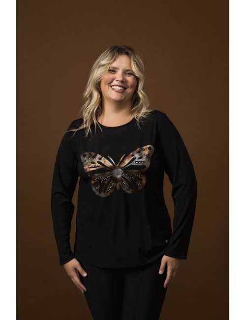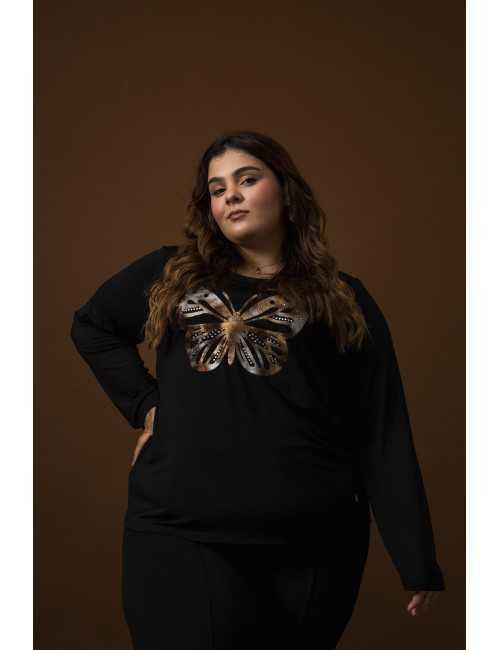 Pull en maille unie, col rond, manches longues, imprimé papillon sur le devant. Collection : Automne Hiver Disponible en Grandes Tailles Produit de design et fabrication propres. Nous sommes une marque de confection de vêtements avec plus de 50 ans d'expérience Modèle : Taille 1.70m et porte la taille 2XL. Modèle : Taille 1.67m et porte la taille G. Composition : 94% Polyester 6% Élasthanne