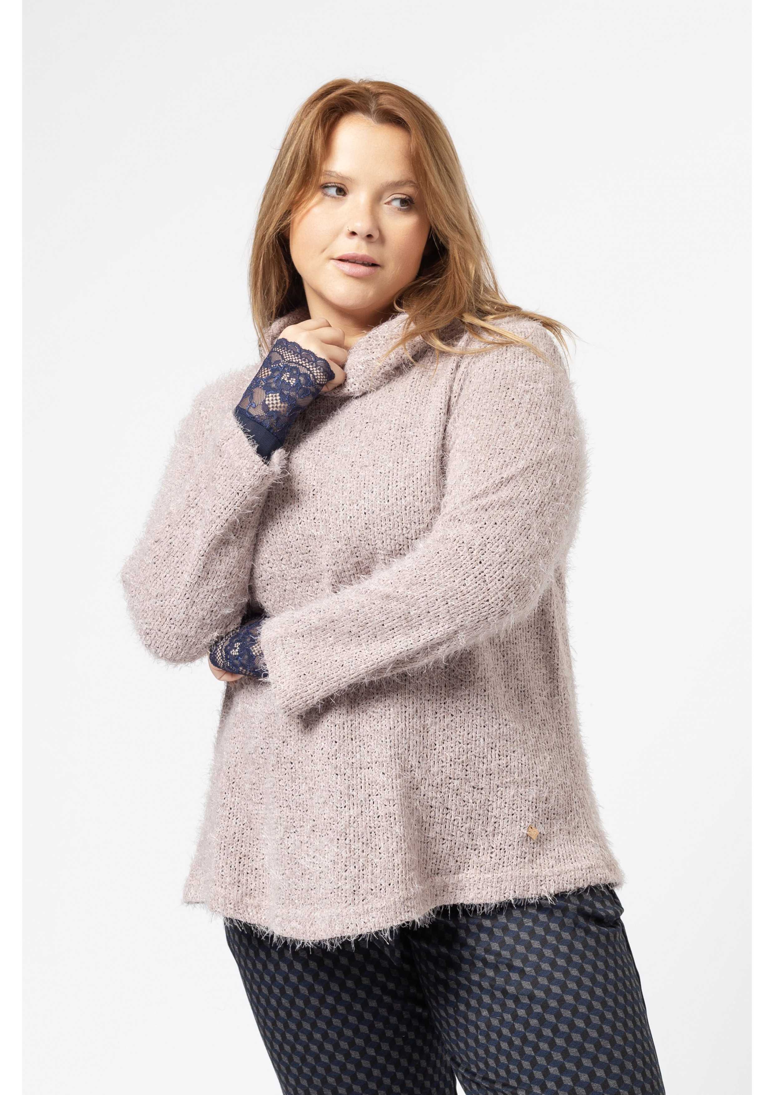 Pull en maille lisse, manches longues, col haut large tombant. Base arrondie. Collection : Automne Hiver Modèle : Taille 1,70 m et porte la taille 2XL. |