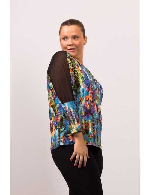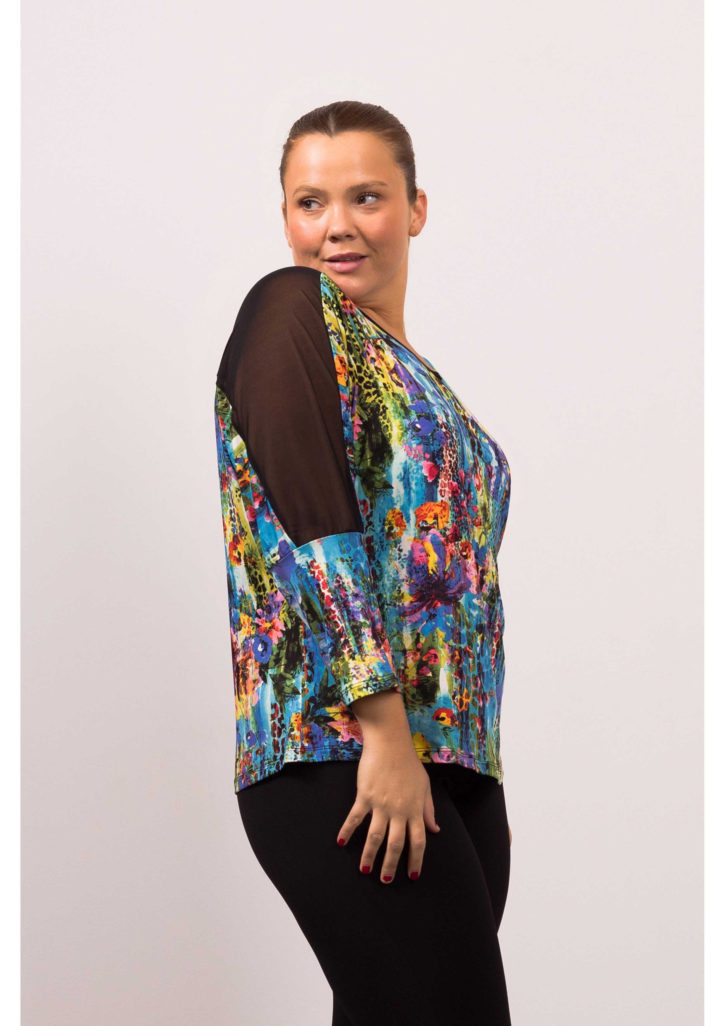 Pull en maille imprimée, manches chauve-souris, décolleté au dos en tulle uni. Collection : Printemps Été Disponible en Tailles Grandes Produit de conception et de fabrication propre. Nous sommes une marque de confection de vêtements avec plus de 50 ans d'expérience Modèle : Taille 1,70 m et porte la taille 2XL. Composition : 96 % Polyester 4 % Élasthanne