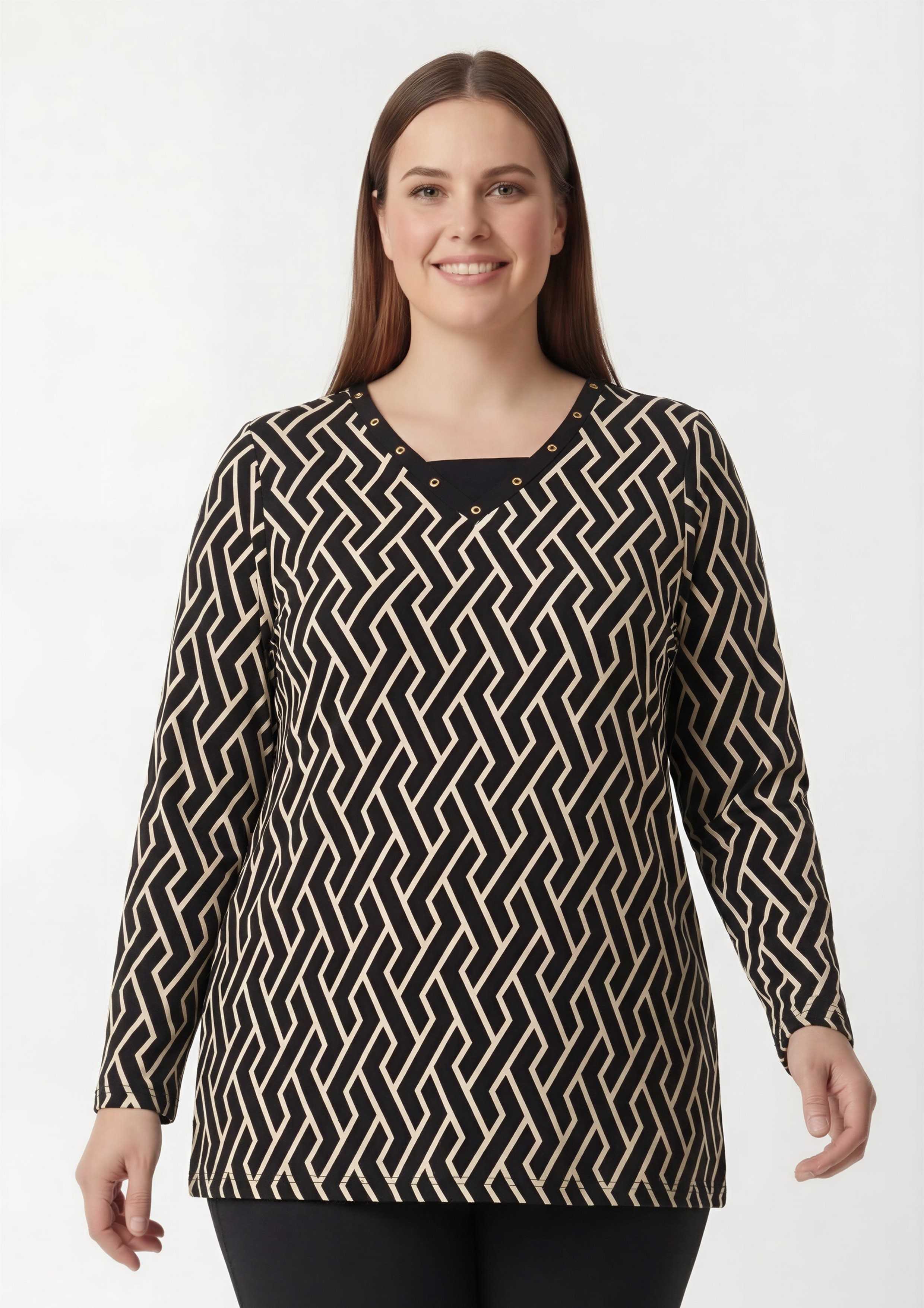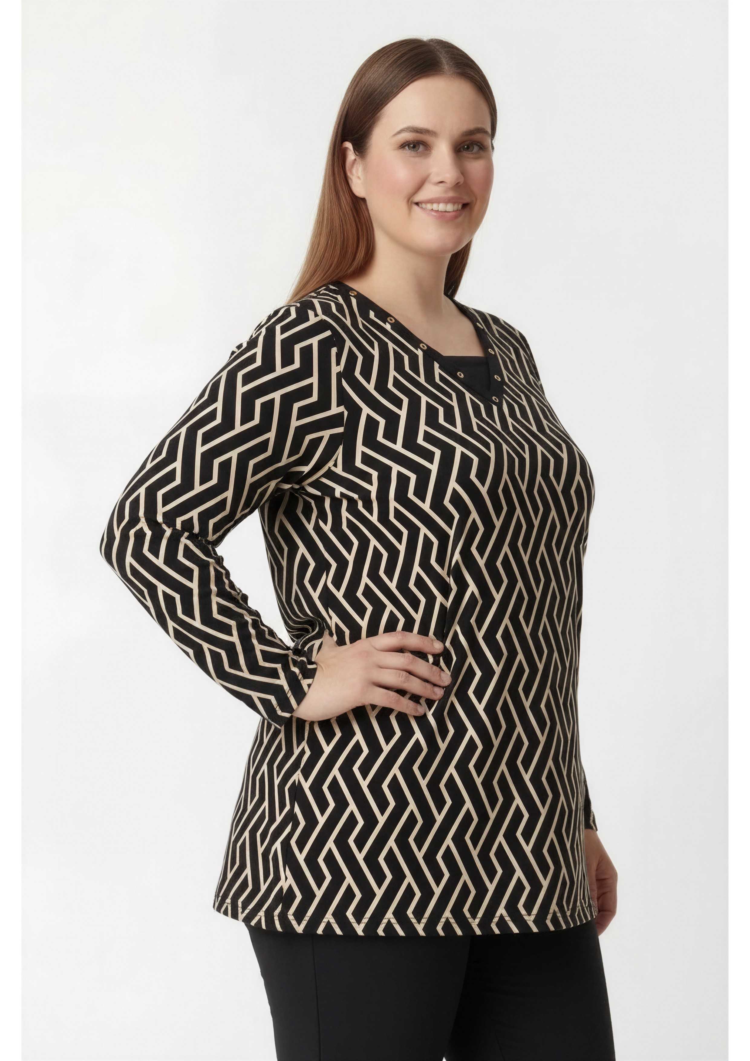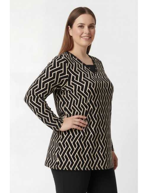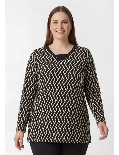 251174 - Camisola em malha fina estampada tons pretos Coleção Outono Inverno Tamanhos Grandes