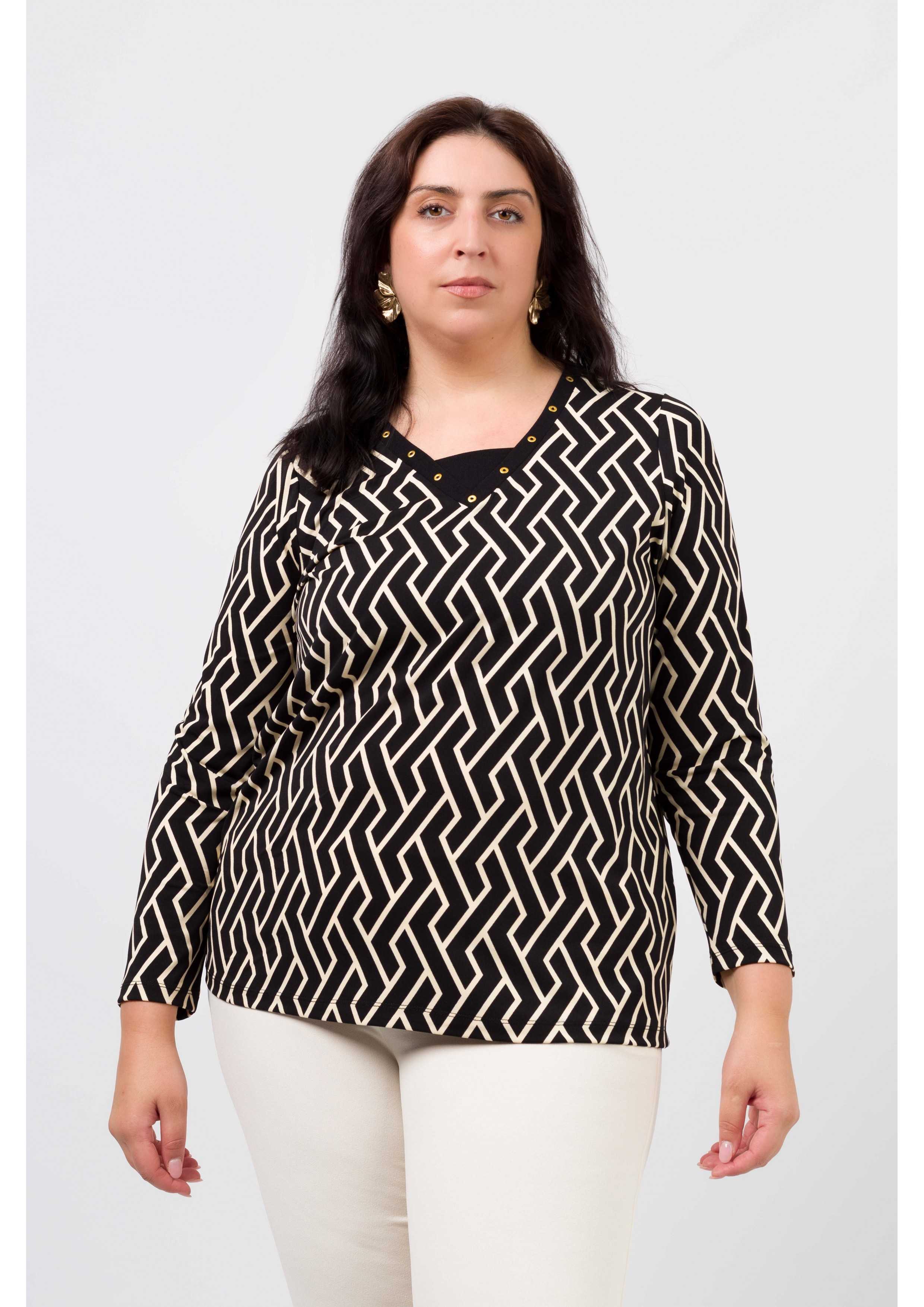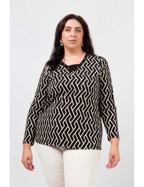 251174 - Camisola em malha fina estampada tons pretos Coleção Outono Inverno Tamanhos Grandes