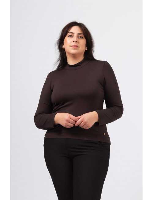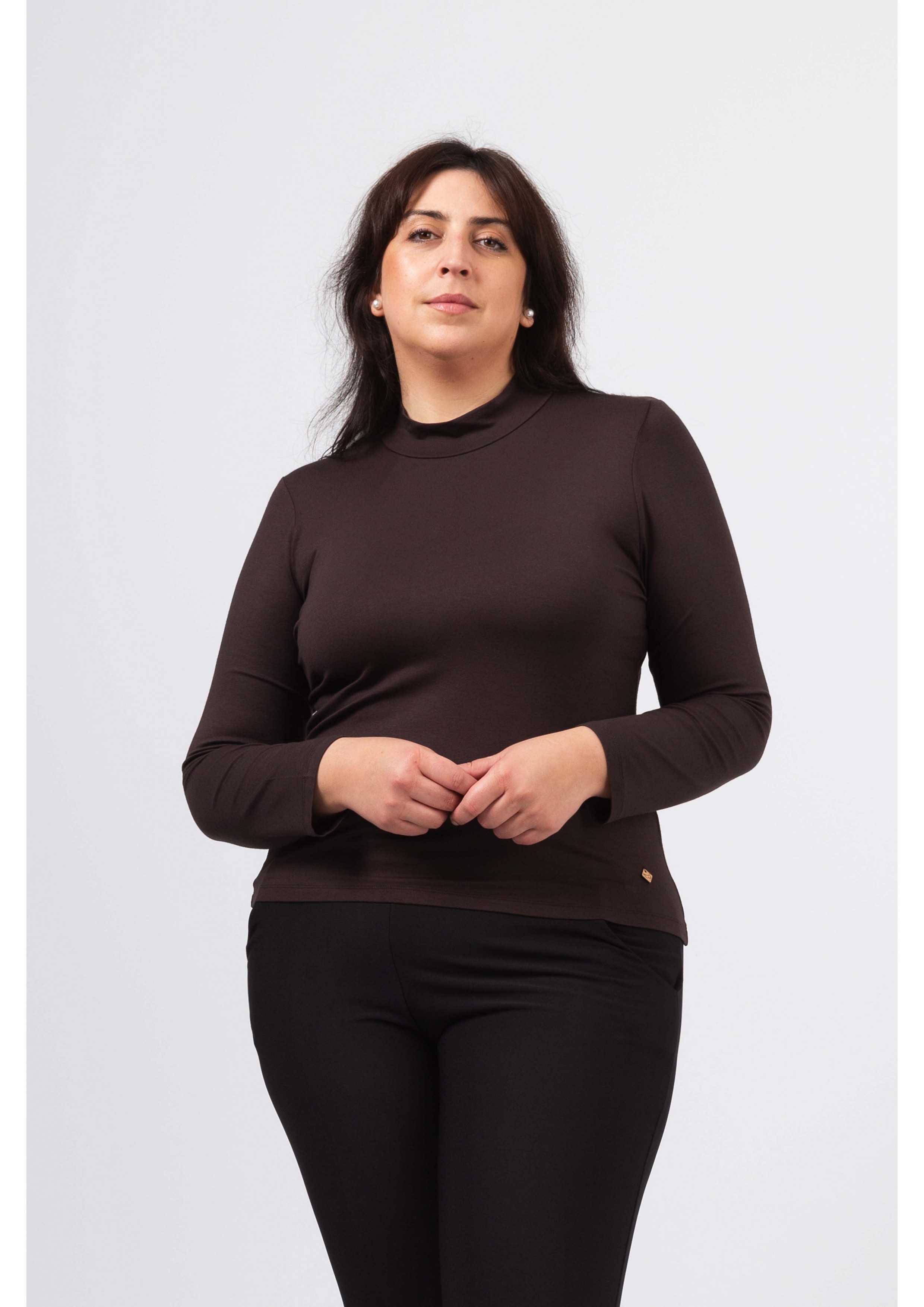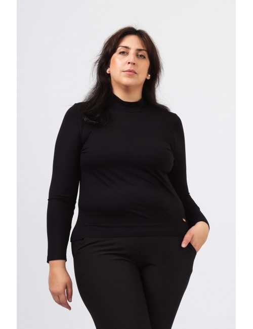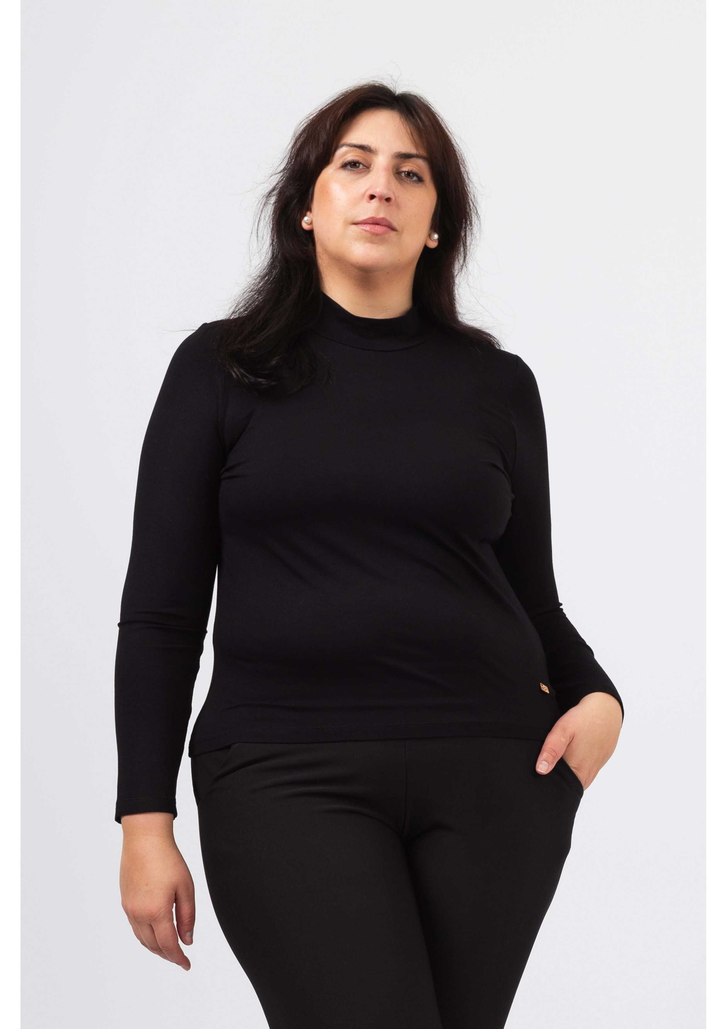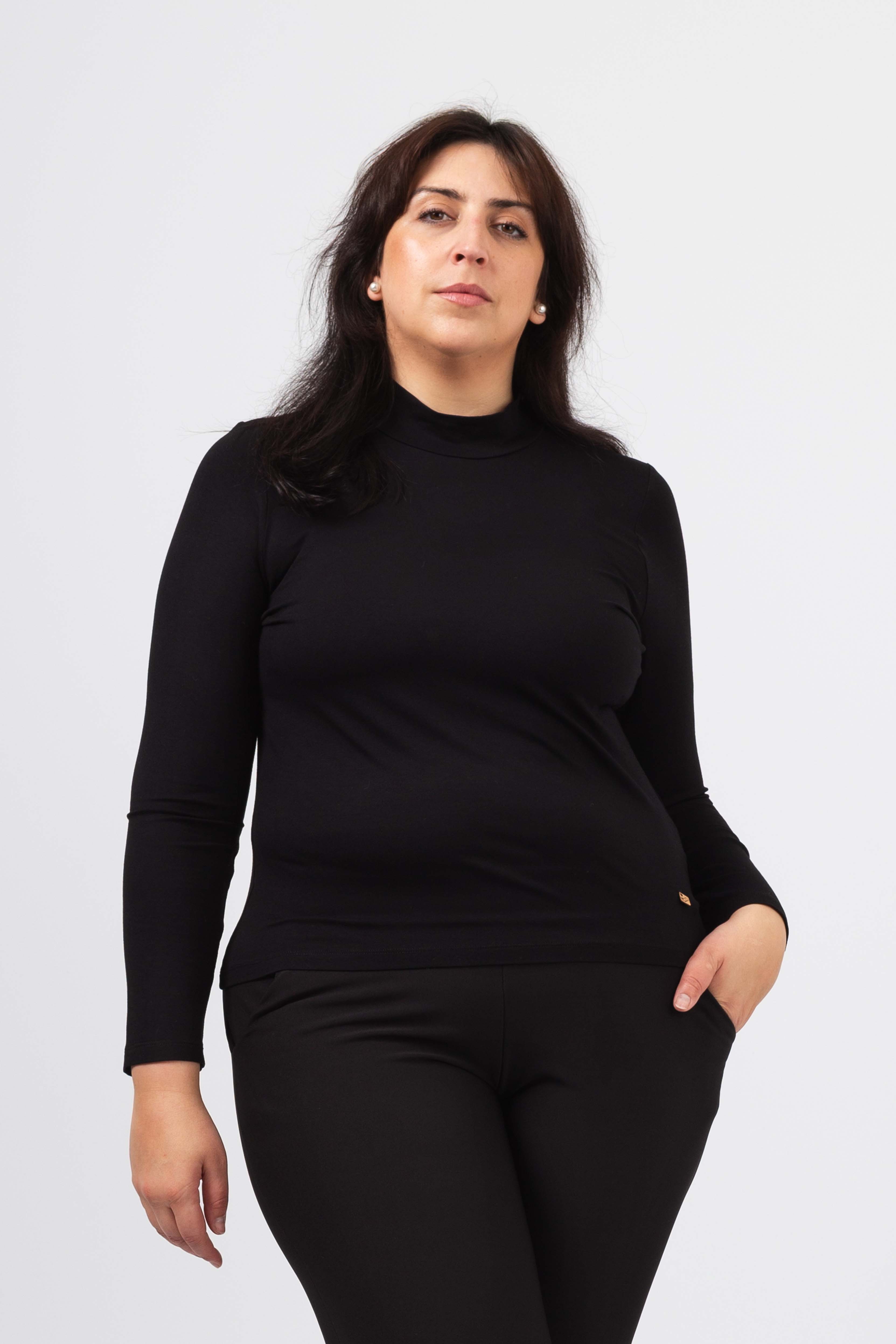 Pull en maille lisse, manches longues et col montant ajusté au cou. Coupe droite.