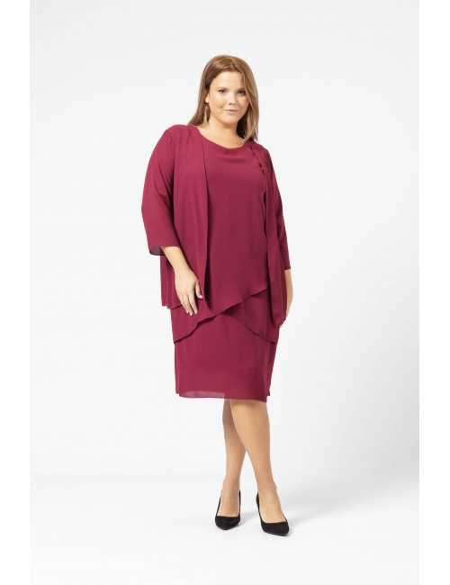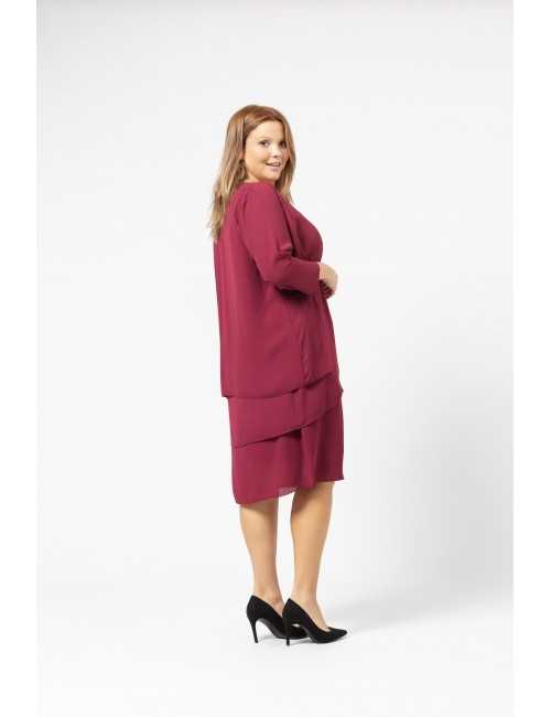 Ensemble de manteau et de robe doublée. Collection : Automne Hiver Modèle : Taille 1.65m et porte la taille 3XL couleur aubergine.
