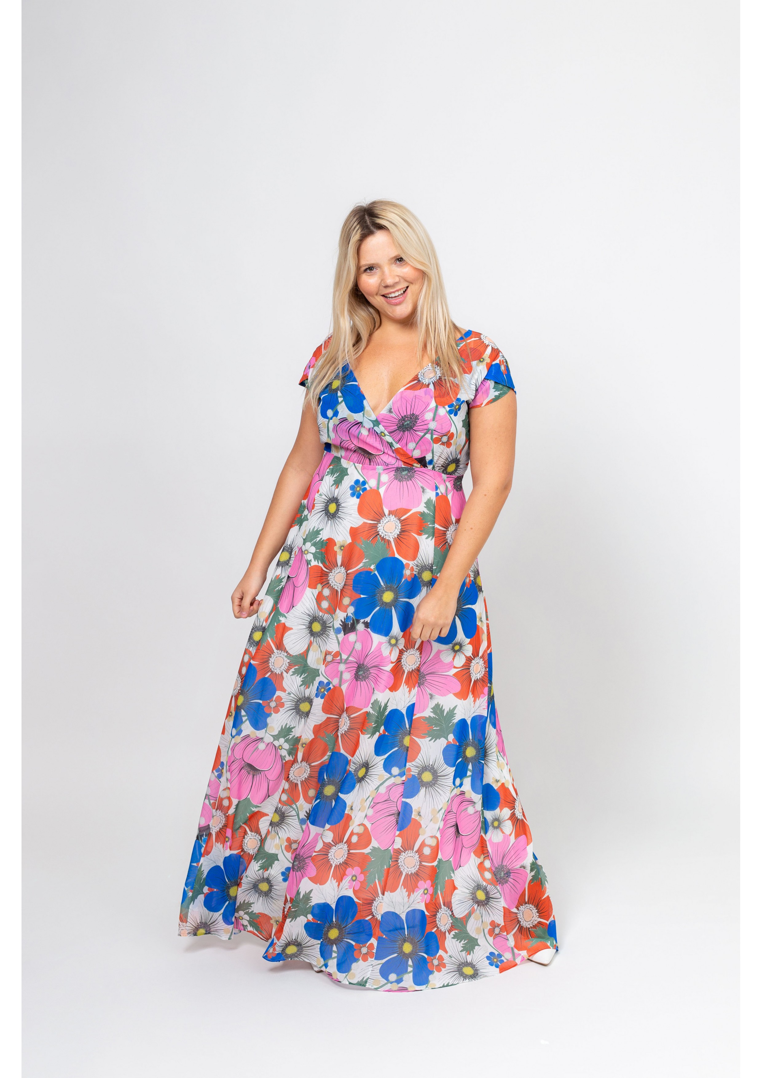Robe longue, en tissu fluide, corps en drapé, jupe large et doublée. Collection : Printemps Été Disponible en Tailles Grandes Produit de conception et de fabrication propre. Nous sommes une marque de confection de vêtements avec plus de 50 ans d'expérience. Modèle : Taille 1,70 m et porte la taille 2XL en couleur bleue. Modèle : Taille 1,65 m et porte la taille 3XL en couleur rose. Composition : Extérieur : 100% Polyester / Doublure : 94% Polyester 6% Élasthanne