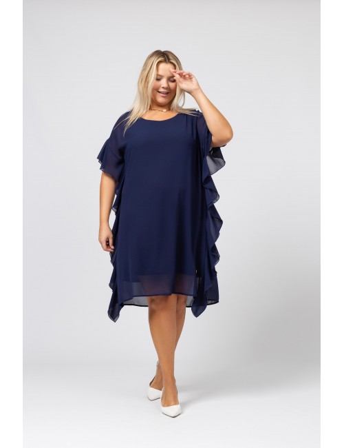Robe en tissu uni avec doublure et coupe droite avec volants sur le côté. Collection : Printemps Été Modèle : Taille 1.70m et porte la taille 2XL.
