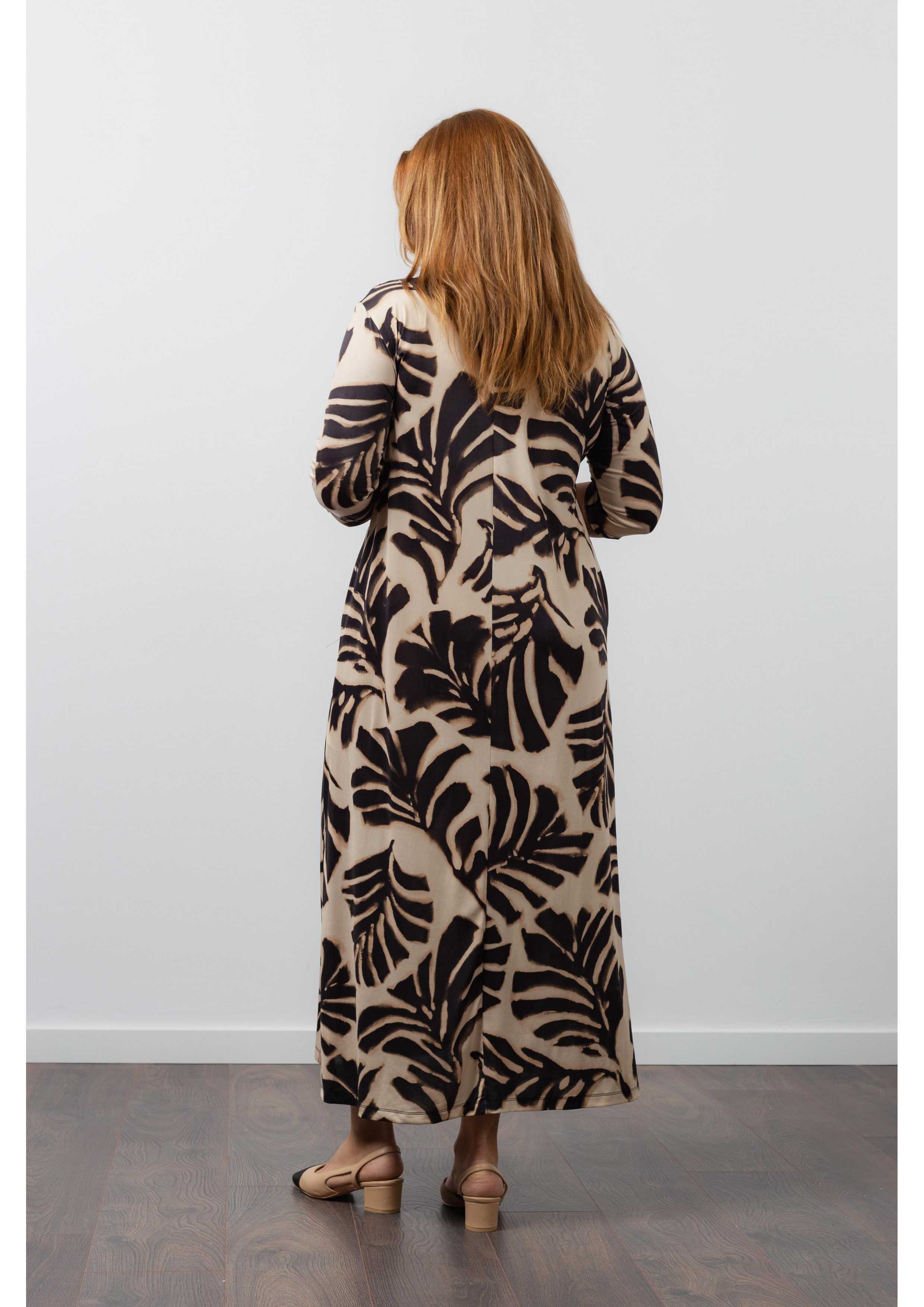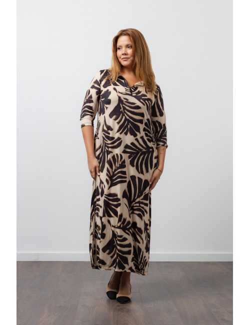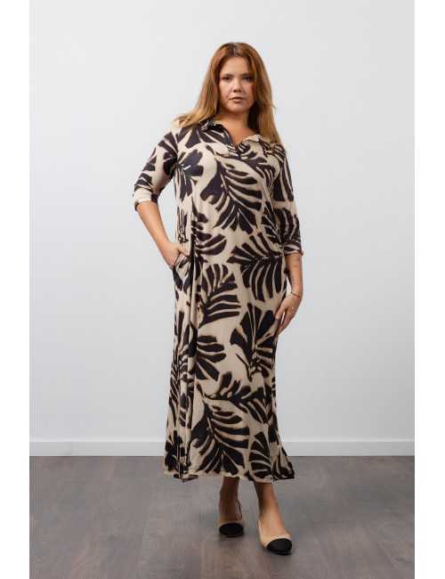 Robe en maille imprimée, manches 3/4. Poches et fentes latérales. Patte et col. Collection : Printemps Été Disponible en Grandes Tailles Produit de design et fabrication propre. Nous sommes une marque de confection de vêtements avec plus de 50 ans d'expérience Modèle : Taille 1.70m et porte la taille XL. Composition : 95% Polyester 5% Élasthanne
