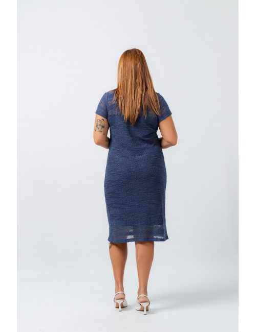 Robe en dentelle, manches courtes. Encolure ronde avec rabat encolure. Doublure intérieure fixée au niveau de la poitrine. Collection : Printemps Été Modèle : Taille 1.70 m et porte la taille XL.