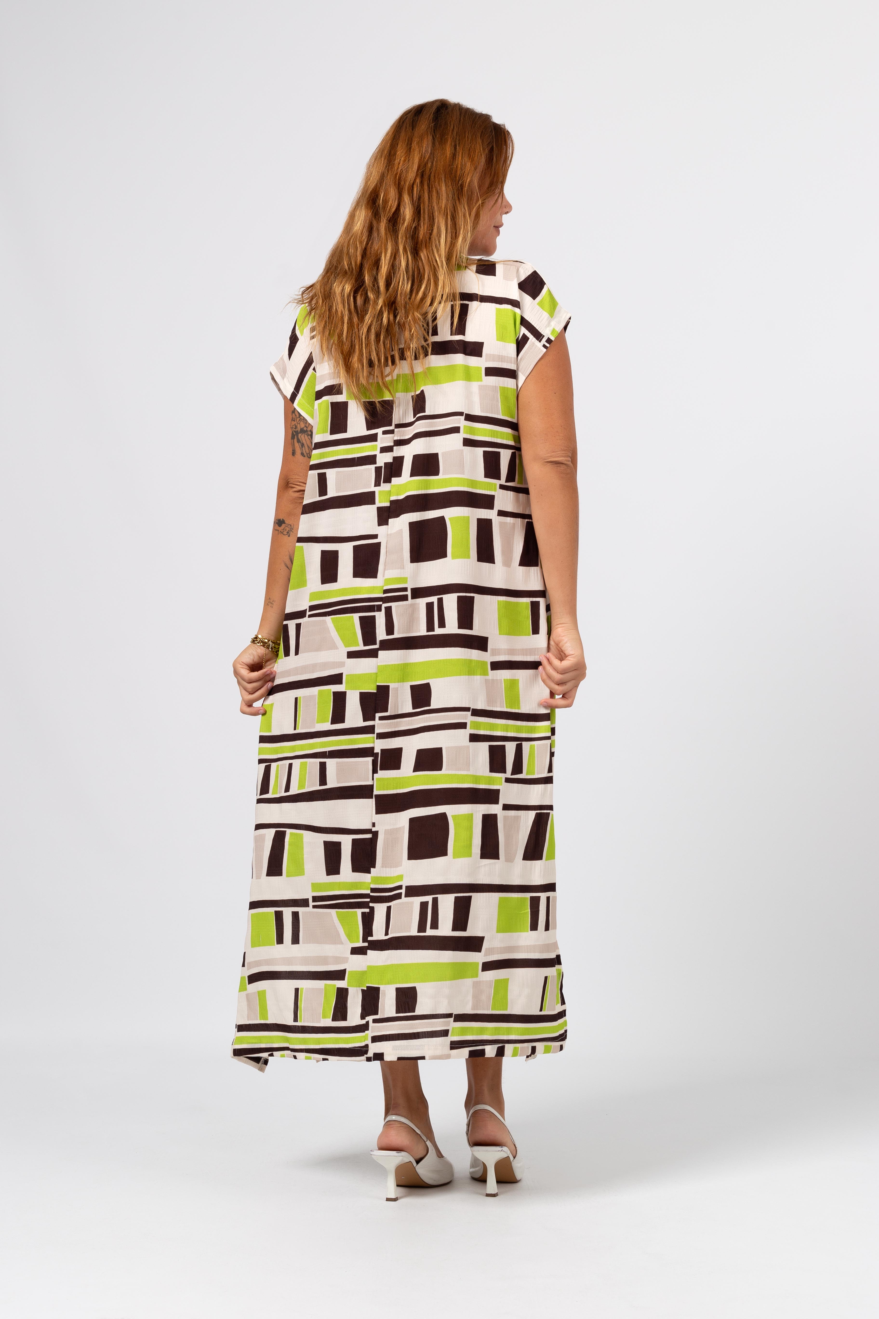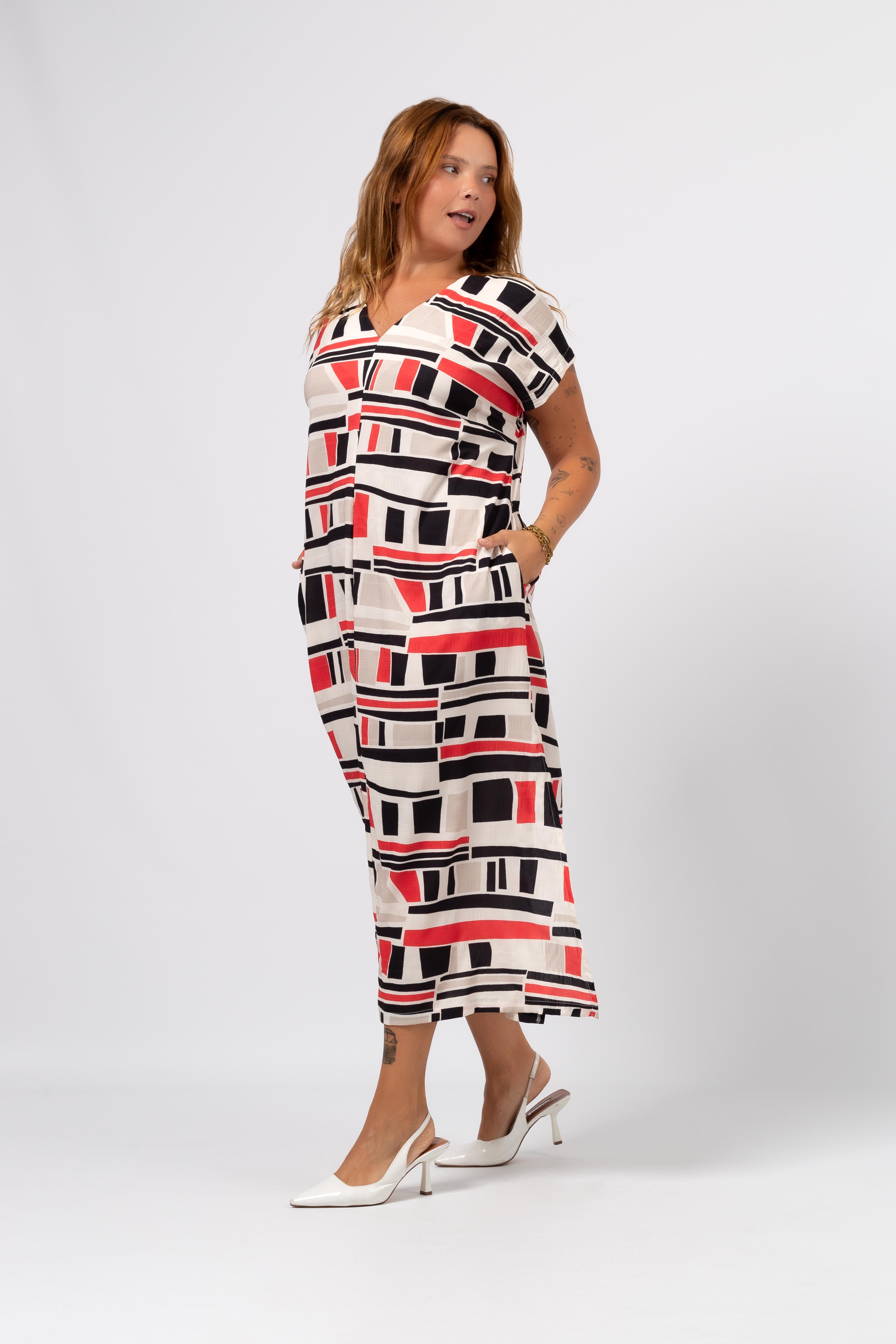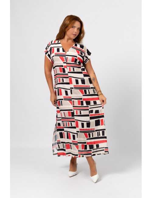 Robe en tissu imprimé, coupe devant et derrière. Décolleté en V. Poches et fentes latérales. Épaule tombante. Collection : Printemps Été Disponible en Grandes Tailles Produit de design et de fabrication propre. Nous sommes une marque de confection de vêtements avec plus de 50 ans d'expérience Modèle : Taille 1.70m et porte la taille XL. Composition : 99% Polyester 1% Élasthanne