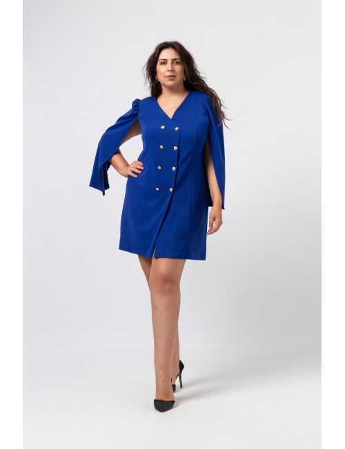 Robe en tissu uni, style manteau croisé avec des boutons dorés, creusé avec des manches style cape avec fronces à l'épaule. Avec épaulettes Collection : Printemps Été Disponible en Grandes Tailles Produit de conception et de fabrication propre. Nous sommes une marque de confection de vêtements avec plus de 50 ans d'expérience Modèle : Taille 1,70 m et porte la taille XL. Composition : 95% Polyester 5% Élasthanne
