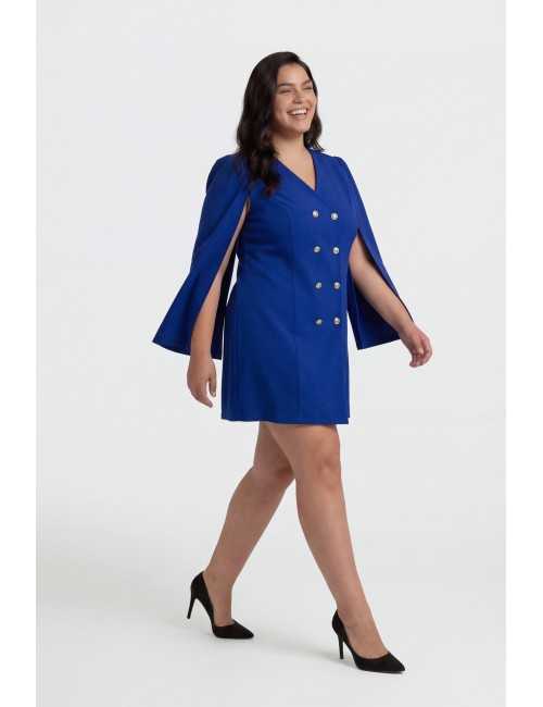 Robe en tissu uni, style manteau croisé avec des boutons dorés, creusé avec des manches style cape avec fronces à l'épaule. Avec épaulettes Collection : Printemps Été Disponible en Grandes Tailles Produit de conception et de fabrication propre. Nous sommes une marque de confection de vêtements avec plus de 50 ans d'expérience Modèle : Taille 1,70 m et porte la taille XL. Composition : 95% Polyester 5% Élasthanne