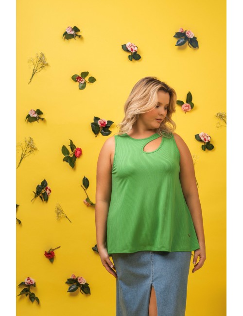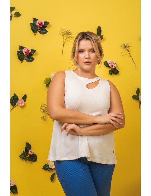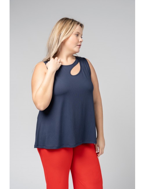 Débardeur en maille côtelée avec déchirure en diagonale. Collection : Printemps Été Disponible en Grandes Tailles Produit de conception et de fabrication propre. Nous sommes une marque de confection de vêtements avec plus de 50 ans d'expérience Modèle : Hauteur 1,70 m et porte la taille 2XL. Composition : 97% Polyester 3% Élasthanne