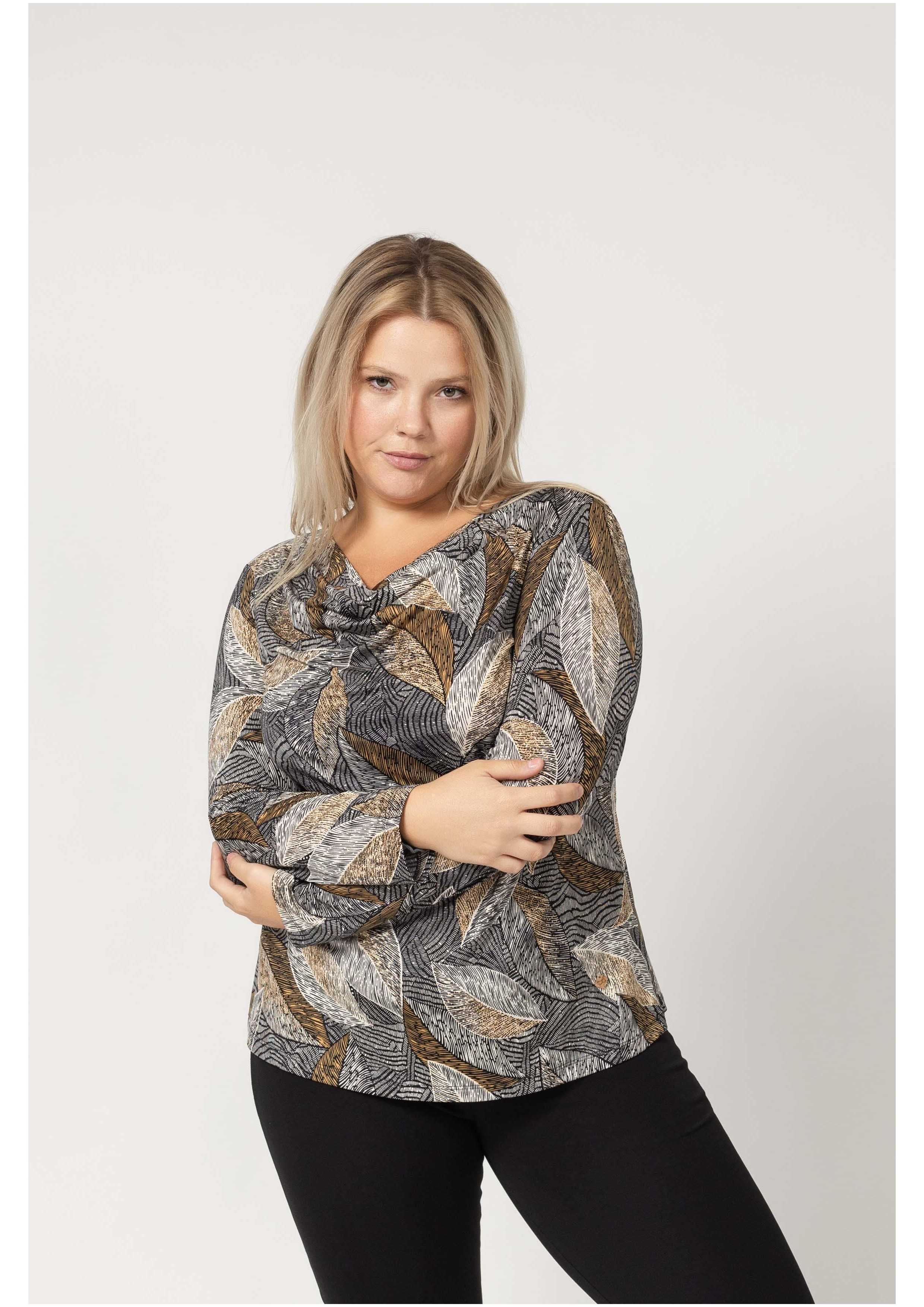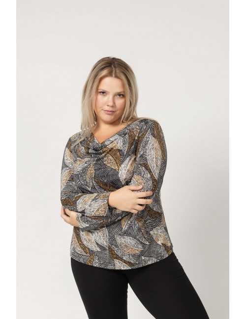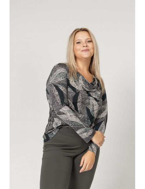 Tunique en maille imprimée, manches longues, décolleté drapé. Collection : Automne Hiver Disponible en Grandes Tailles Produit de design et de fabrication propre. Nous sommes une marque de confection de vêtements avec plus de 50 ans d'expérience. Modèle : Taille 1.70m et porte la taille 2XL. Composition : 95% Polyester 5% Élasthanne