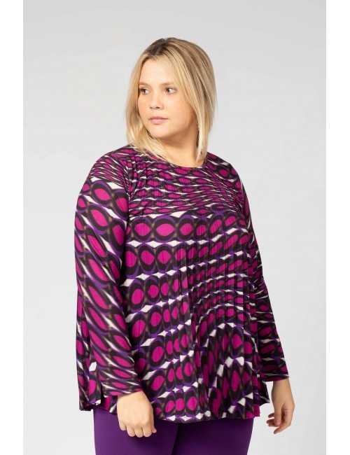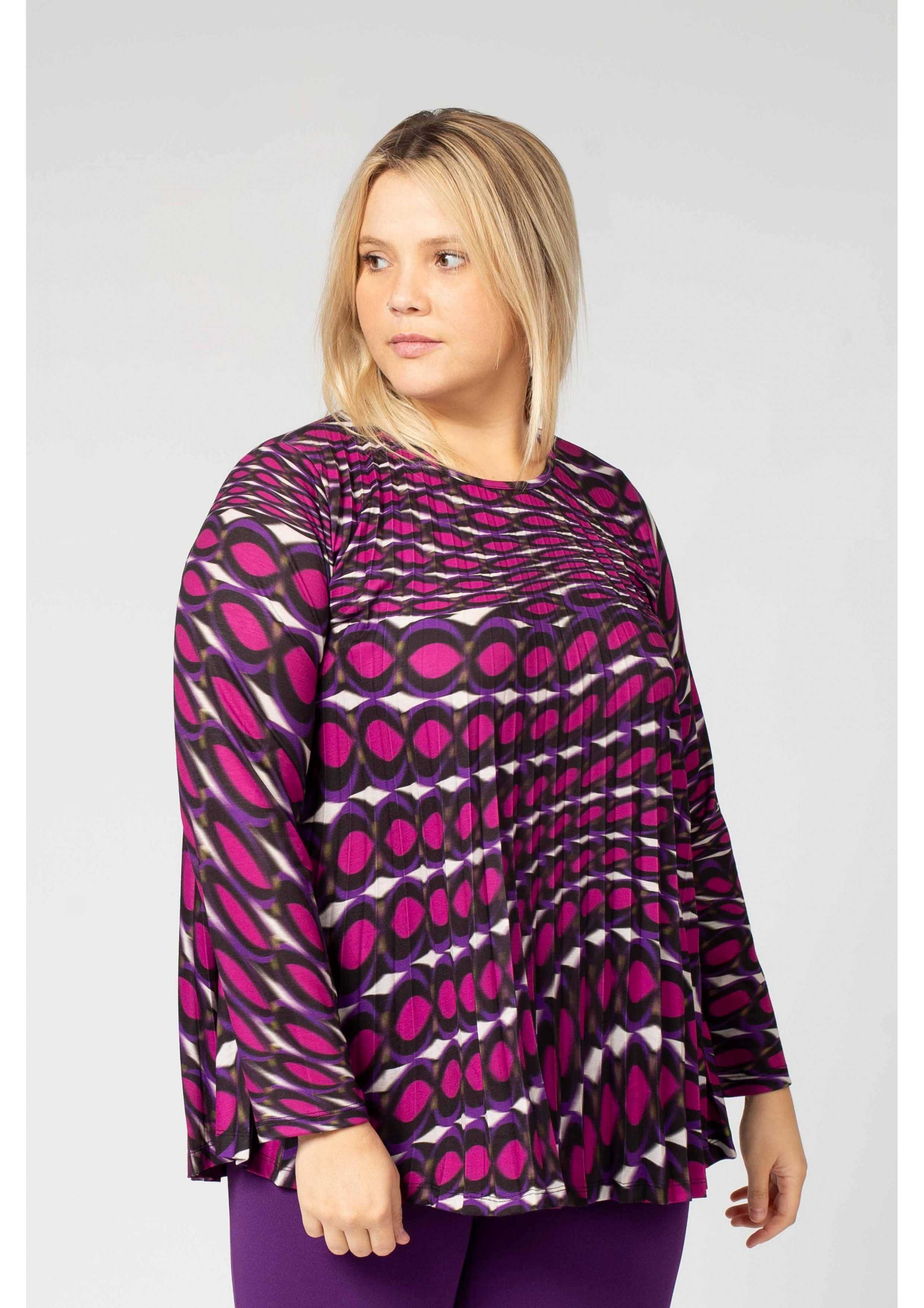 Tunique en maille imprimée, à manches longues, modèle évasé plissé avec décolleté rond Collection : Automne Hiver Disponible en Grandes Tailles Produit de design et fabrication propre. Nous sommes une marque de confection de vêtements avec plus de 50 ans d'expérience Modèle : Taille 1,70 m et porte la taille 2XL. Composition : 95% Polyester 5% Élasthanne