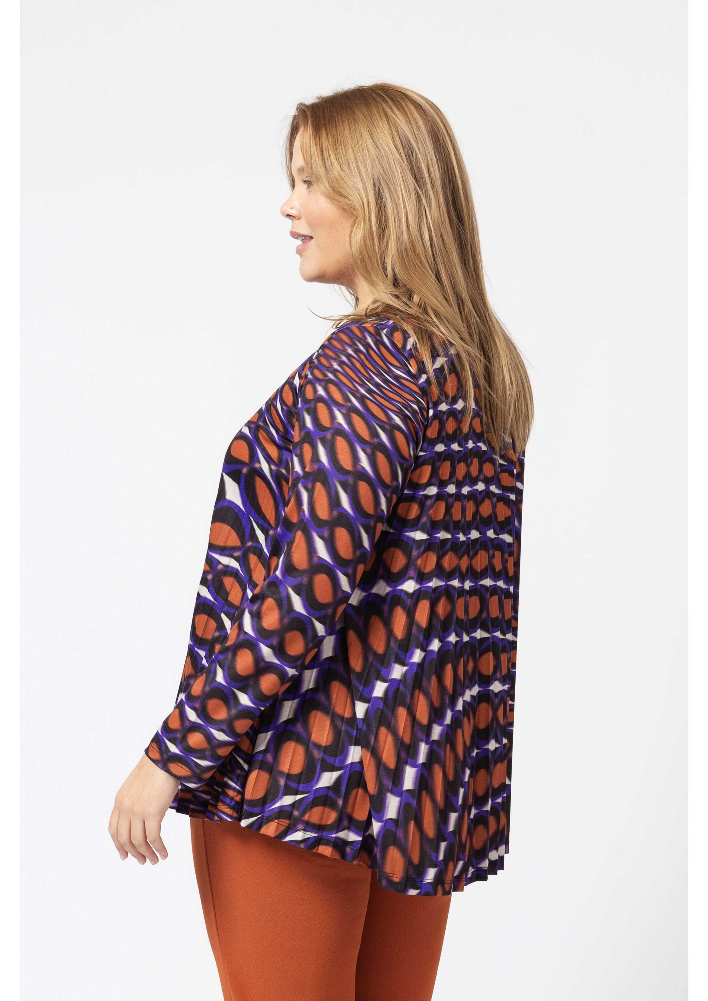 Tunique en maille imprimée, à manches longues, modèle évasé plissé avec décolleté rond Collection : Automne Hiver Modèle : Taille 1,70 m et porte la taille 2XL. 95% Polyester 5% Élasthanne