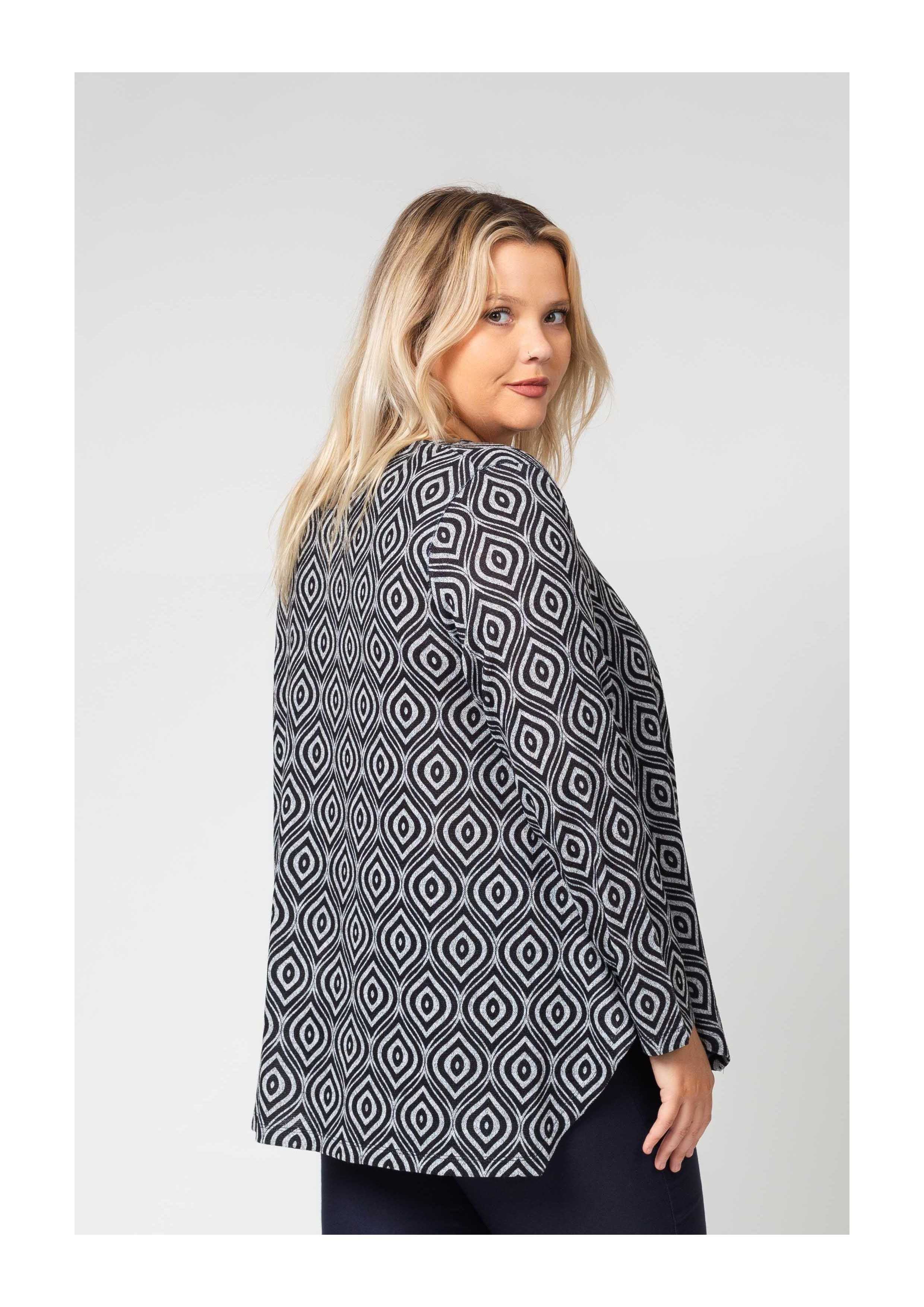 Tunique à manches longues en maille imprimée avec décolleté en V. Collection : Automne Hiver Disponible en Grandes Tailles Produit de design et de fabrication propre. Nous sommes une marque de confection de vêtements avec plus de 50 ans d'expérience Modèle : Taille 1.70m et porte la taille 2XL. Composition : 96% Polyester 5% Élasthanne