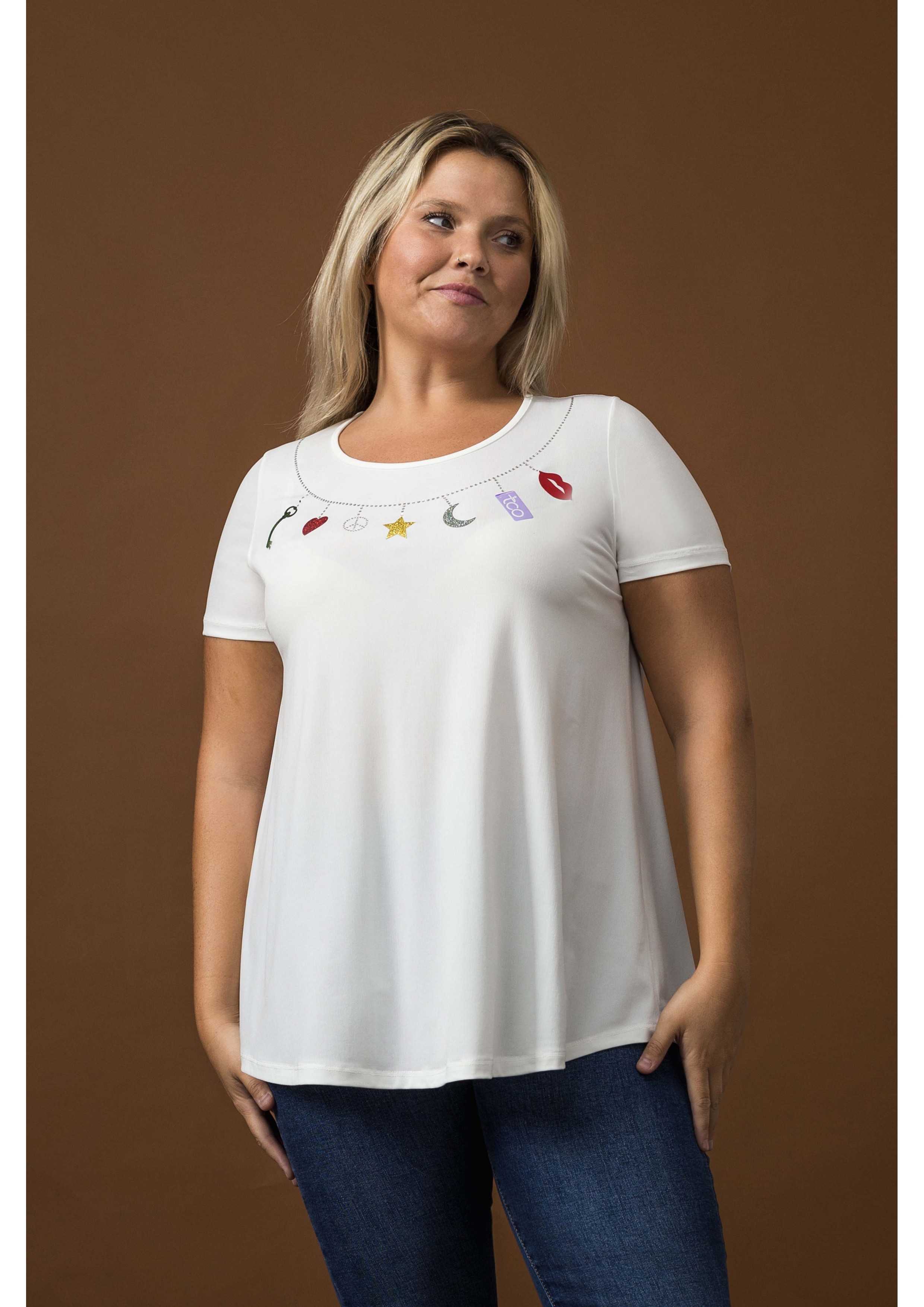 Tunique en maille unie, motif au col devant, manches courtes. Modèle évasé. Collection : Automne Hiver Disponible en Grandes Tailles Produit de conception et fabrication propres. Nous sommes une marque de confection de vêtements avec plus de 50 ans d'expérience Modèle : Taille 1.70m et porte la taille 2XL. Composition : 94%Polyester 6%Élasthanne