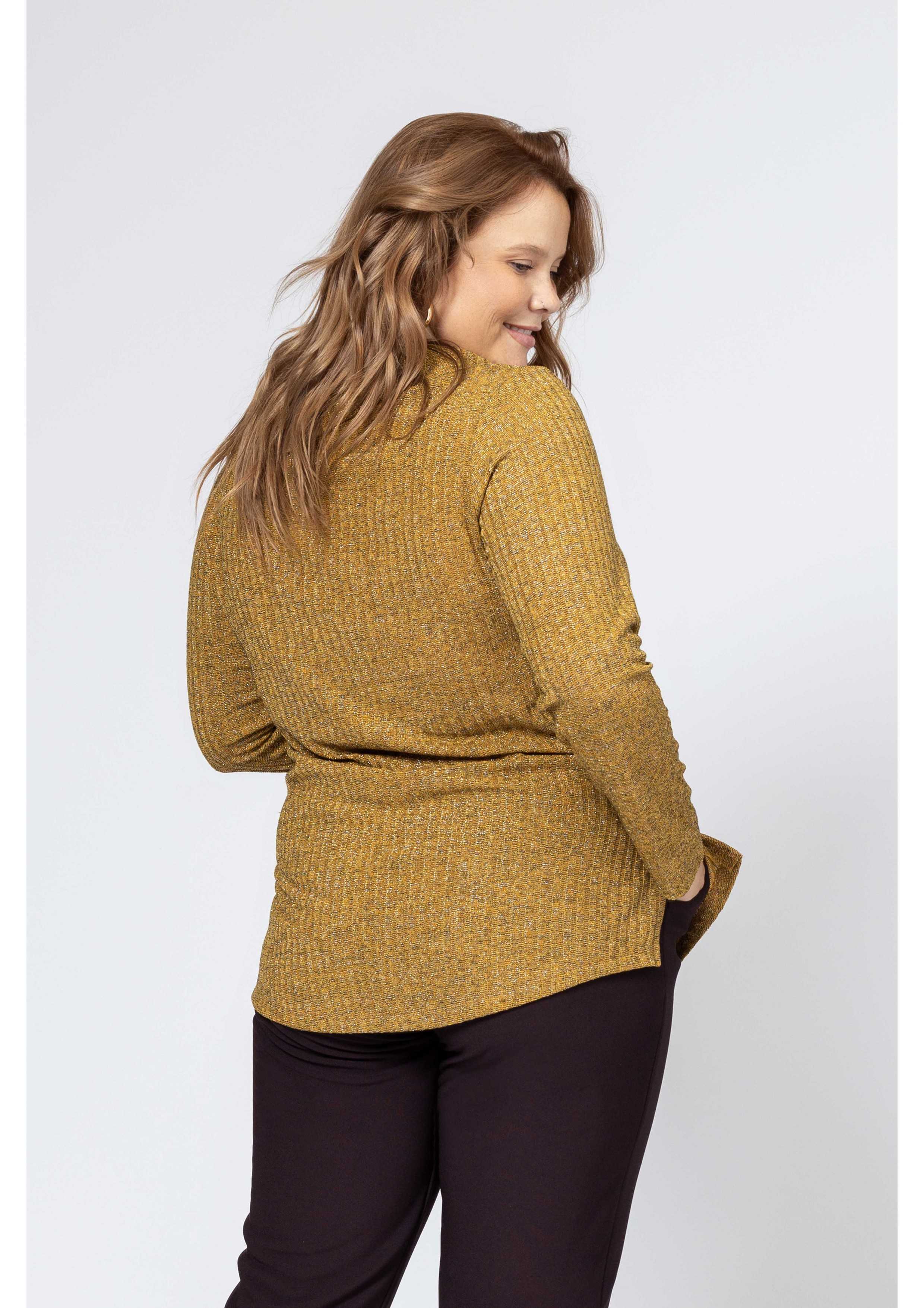 Tunique en maille côtelée avec fil lurex, manches longues, fentes latérales, col haut large avec ouverture latérale. Collection : Automne Hiver Disponible en Grandes Tailles Produit de design et fabrication propres. Nous sommes une marque de confection de vêtements avec plus de 50 ans d'expérience Modèle : Taille 1,70 m et porte la taille 2XL, en couleur bordeaux, jaune et noir. Modèle : Taille 1,67 m et porte la taille G, en couleur bordeaux. Composition : 50% Polyester 45% Viscose 5% Élasthanne