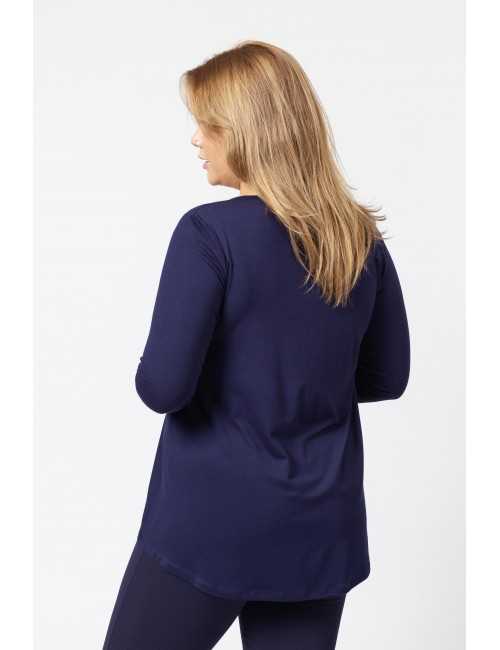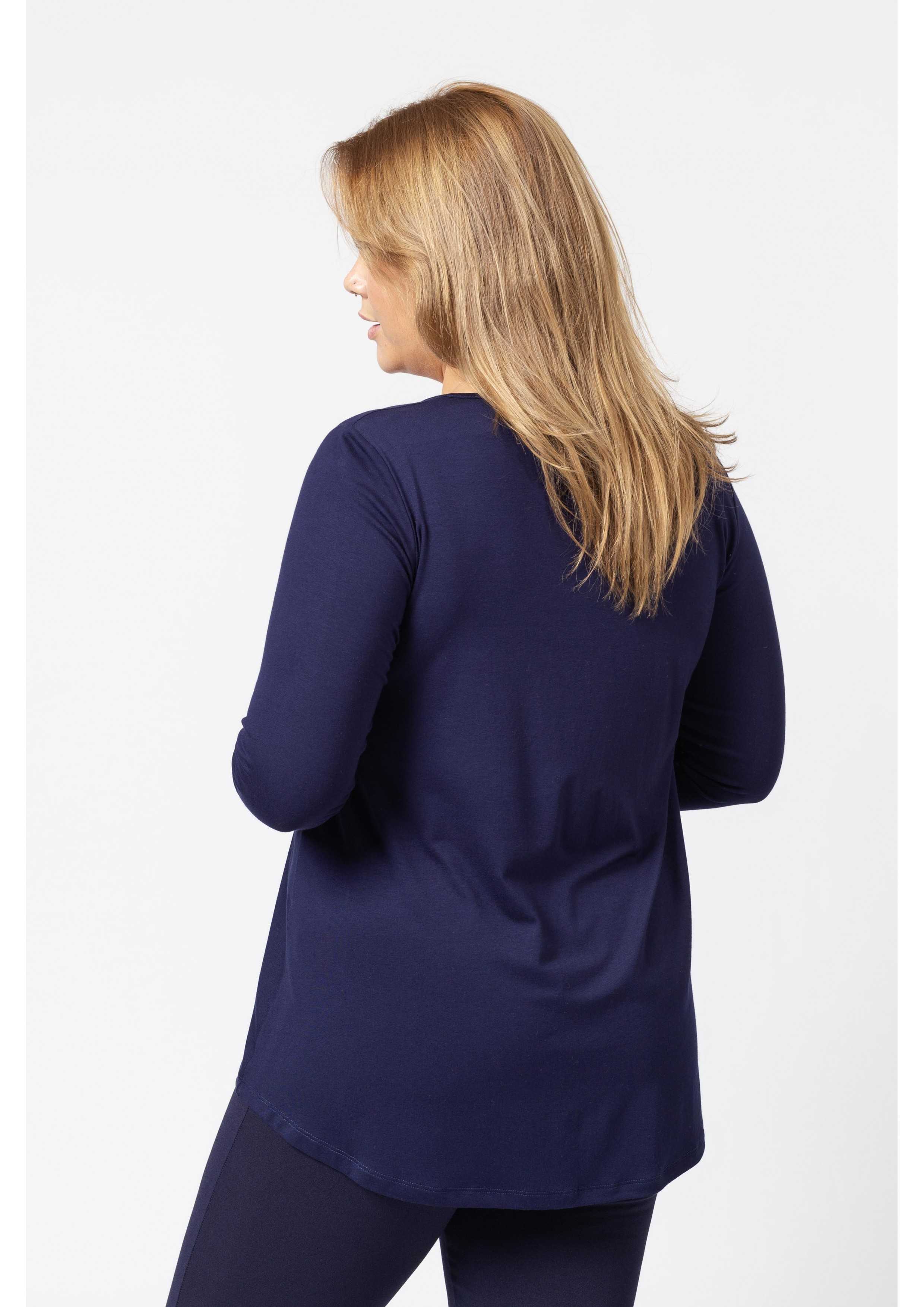 Tunique en maille lisse, modèle évasé, manches longues avec dentelle aux poignets. Encolure ronde. Collection : Automne Hiver Disponible en Grandes Tailles Produit de conception et de fabrication propres. Nous sommes une marque de confection de vêtements avec plus de 50 ans d'expérience Modèle : Taille 1,70 m et porte la taille 2XL. Composition : 94% Viscose 6% Élasthanne