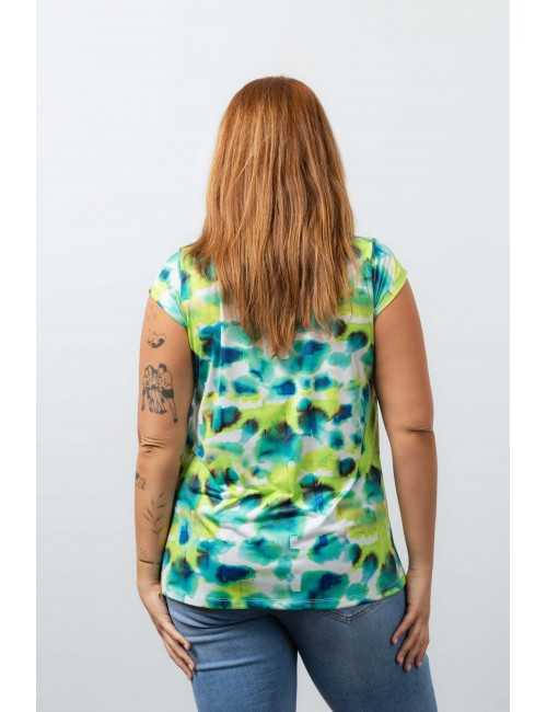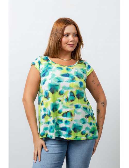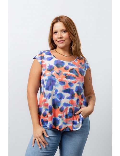 Tunique en maille imprimée, manches en forme de coupe, décolleté rond. Modèle évasé. Collection : Printemps Été Disponible en Grandes Tailles Produit de conception et fabrication propre. Nous sommes une marque de confection de vêtements avec plus de 50 ans d'expérience Modèle : Taille 1,70m et porte la taille XL. Composition : 95% Polyester 5% Élasthanne