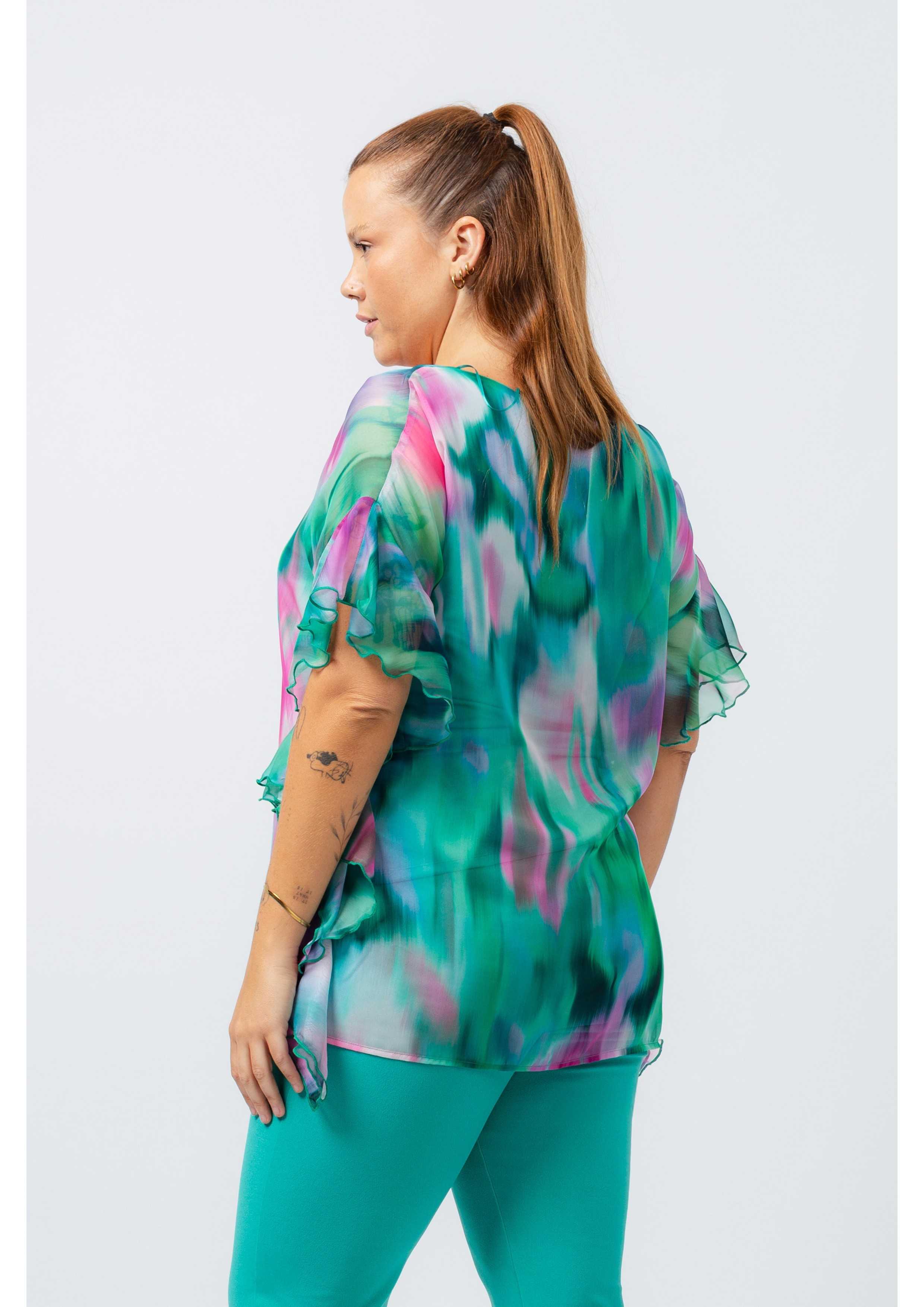 Tunique en tissu imprimé, fin, pièce doublée, volants sur les côtés, avec finitions en biais col rond. Collection : Printemps Été Disponible en Grandes Tailles Produit de conception et fabrication propre. Nous sommes une marque de confection de vêtements avec plus de 50 ans d'expérience Modèle : Taille 1,70 m et porte la taille XL. Composition : 96% Polyester 4% Élasthanne | DOUBLURE 94% Polyester 6% Élasthanne