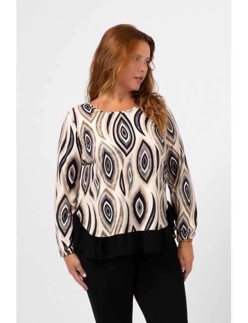 Tunique en maille imprimée, manches longues avec élastique. Col rond, volant en tissu uni en bas. Collection : Automne Hiver Disponible en Tailles Grandes Produit de design et fabrication propre. Nous sommes une marque de confection de vêtements avec plus de 50 ans d'expérience Modèle : Taille 1,70 m et porte la taille XL. Composition : 100% Polyester | 94% Polyester 6% Élasthanne