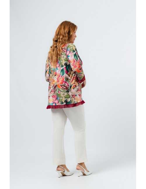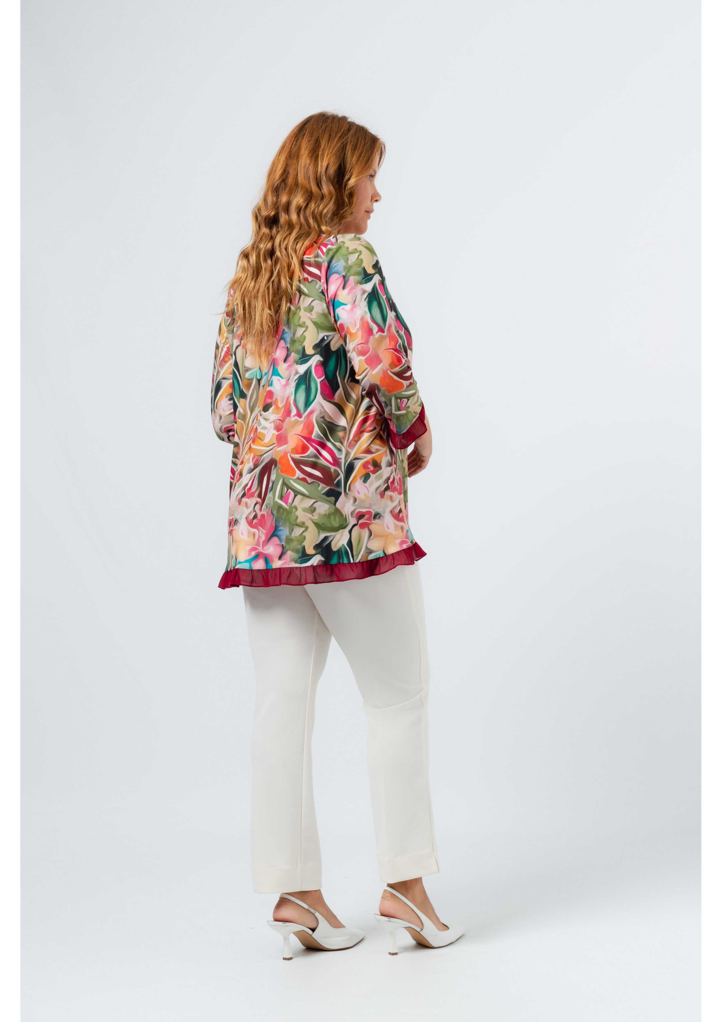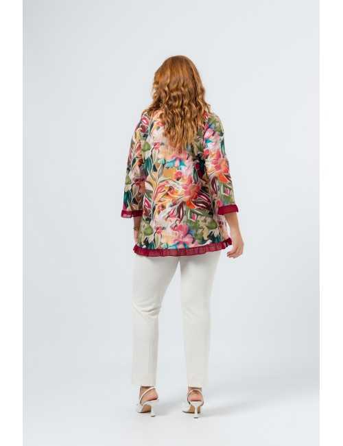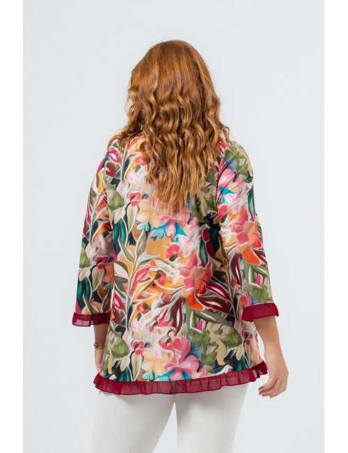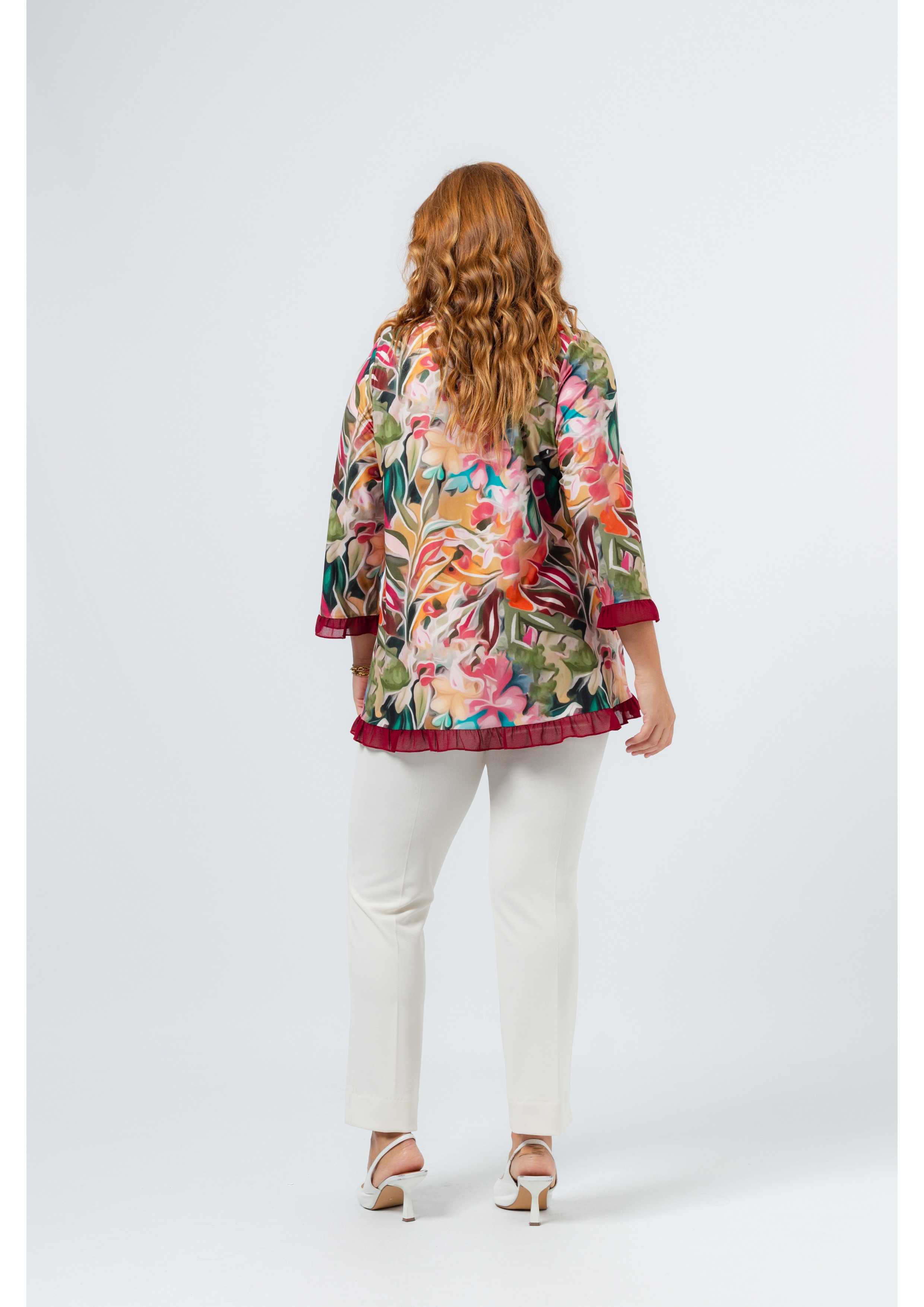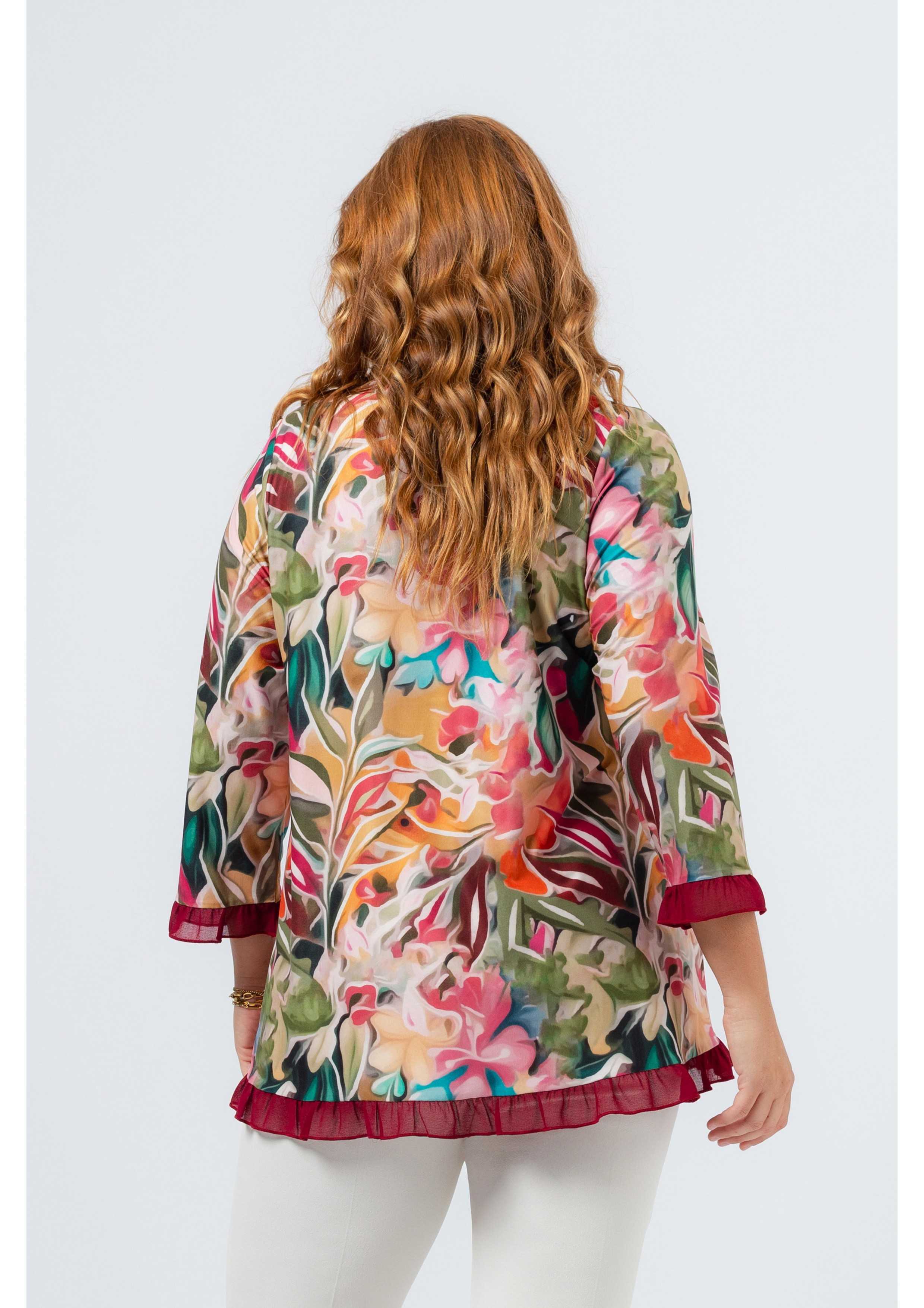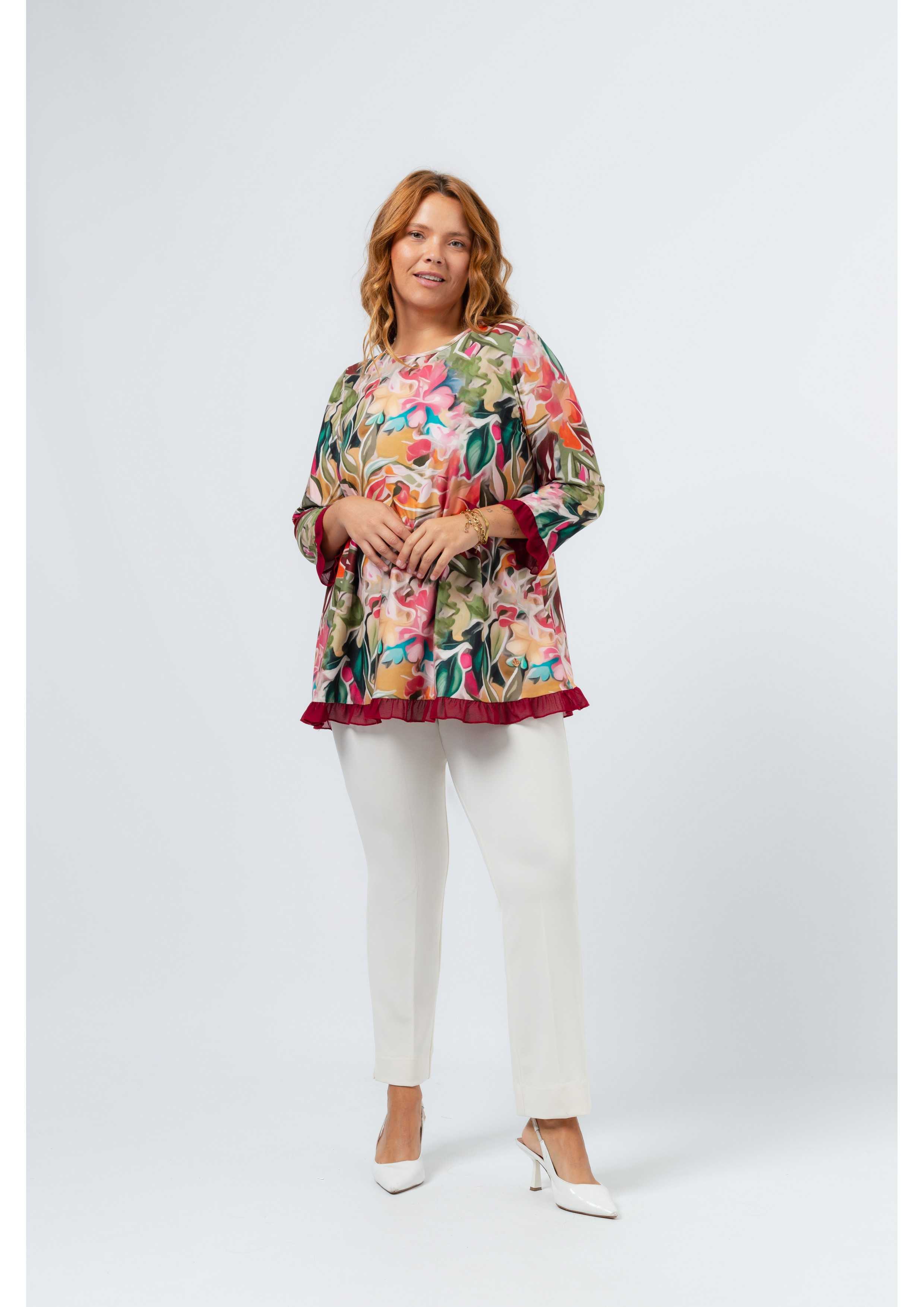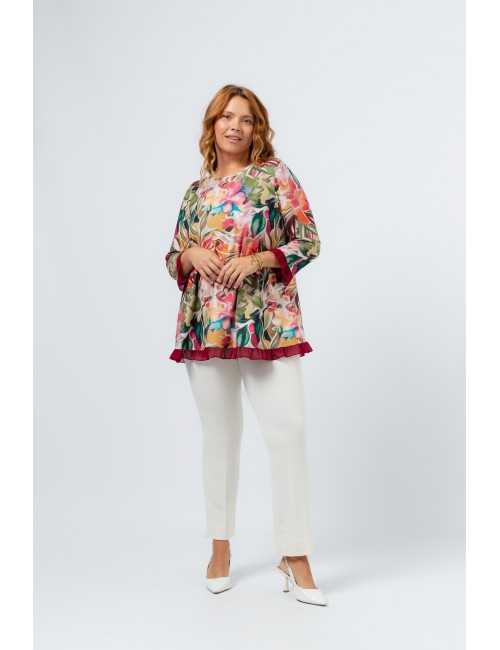 Tunique en maille imprimée, col rond, manches françaises. Volant lisse sur les manches et à la base avec finition en roulotté. Collection : Automne Hiver Disponible en Grandes Tailles Produit de conception et fabrication propre. Nous sommes une marque de confection de vêtements avec plus de 50 ans d'expérience Modèle : Taille 1,70 m et porte la taille XL. Composition : 96% Polyester 4% Élasthanne | 100% Polyester