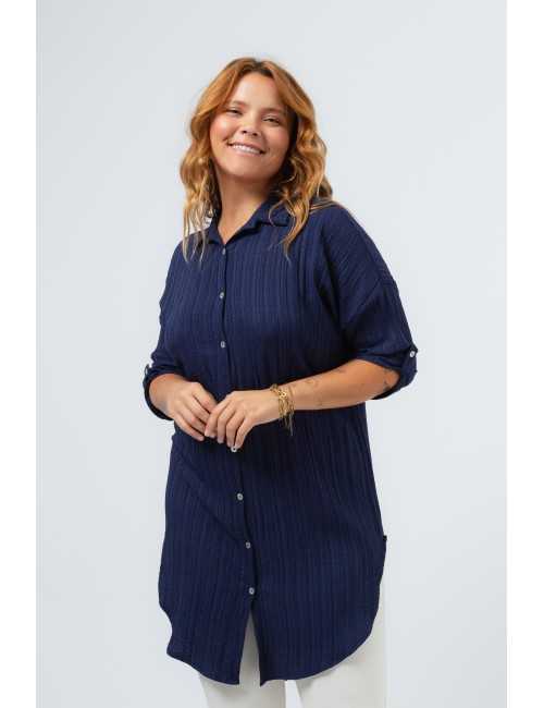 Tunique en tissu avec boutons. Collection : Automne Hiver Disponible en Grandes Tailles Produit de design et de fabrication propres. Nous sommes une marque de confection de vêtements avec plus de 50 ans d'expérience Modèle : Taille 1,65 m et porte la taille 3XL. Composition : 99% Polyester 1% Élasthanne
