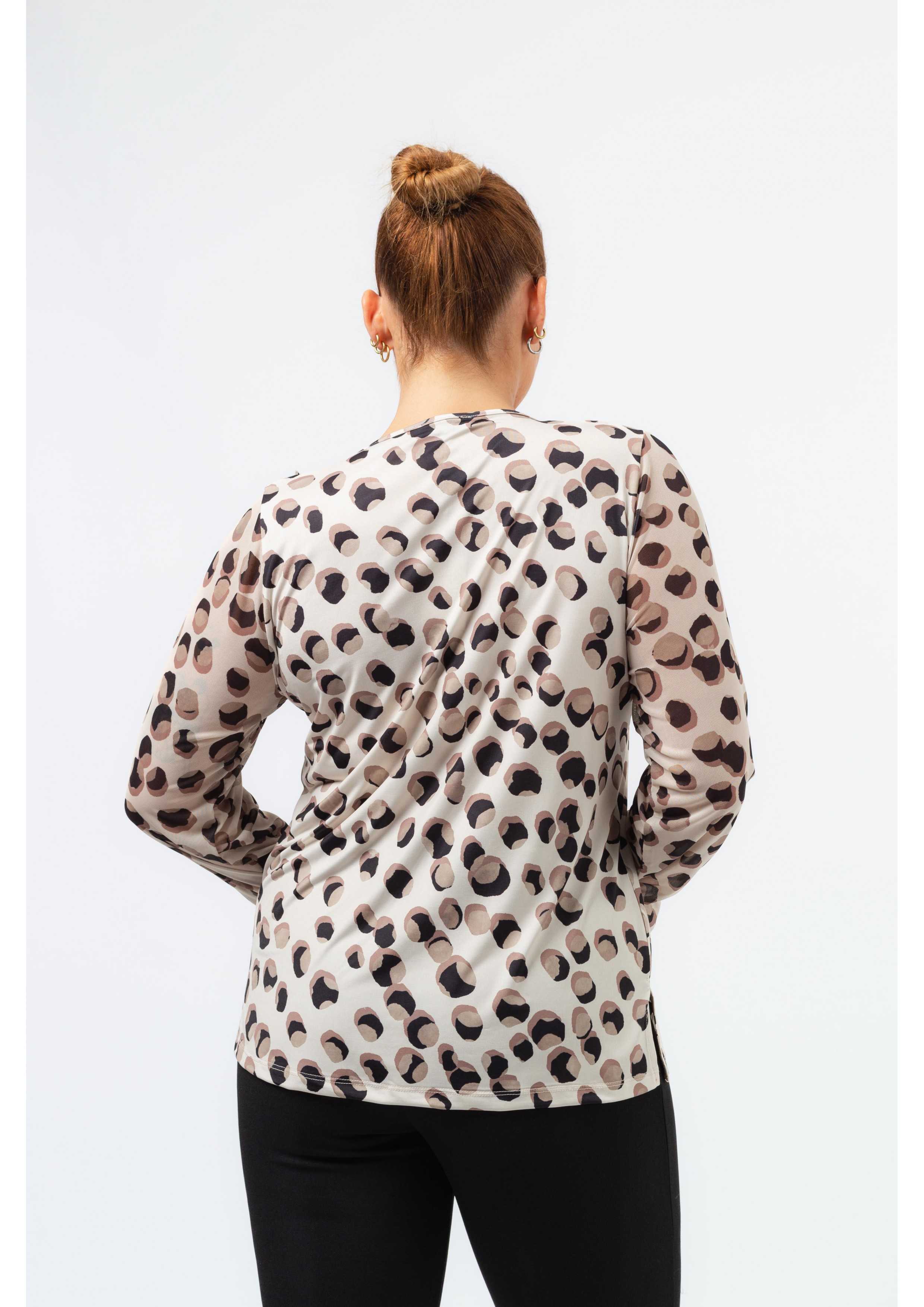 Tunique en maille imprimée avec volants au décolleté et aux manches. Collection : Automne Hiver Disponible en Grandes Tailles Produit de design et de fabrication propre. Nous sommes une marque de confection de vêtements avec plus de 50 ans d'expérience Modèle : Taille 1,70 m et porte la taille XL. Composition : 100% Polyester|95% Polyester 5% Élasthanne