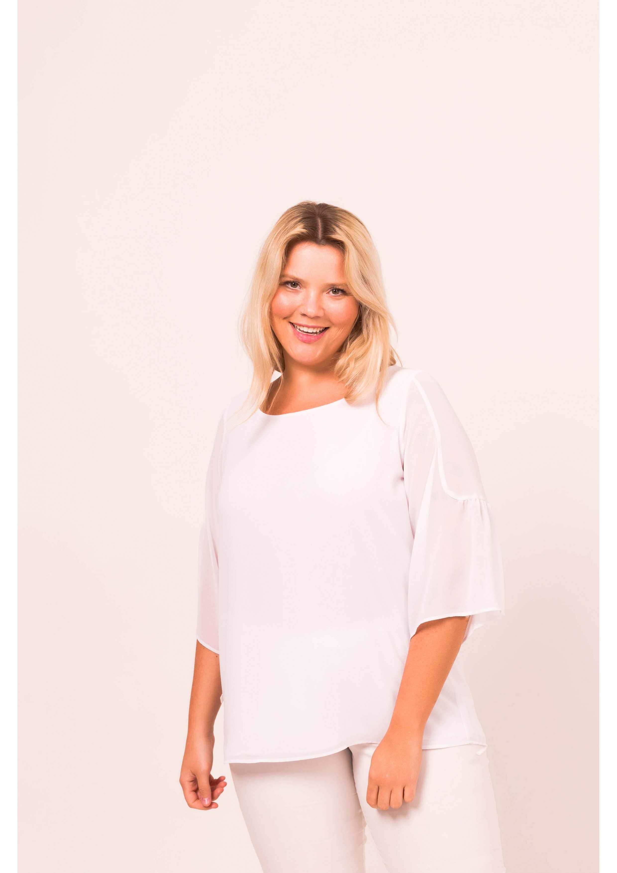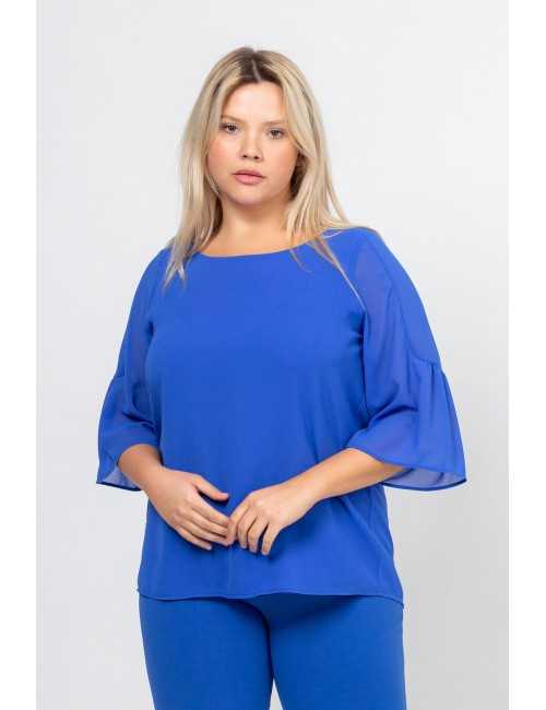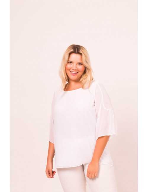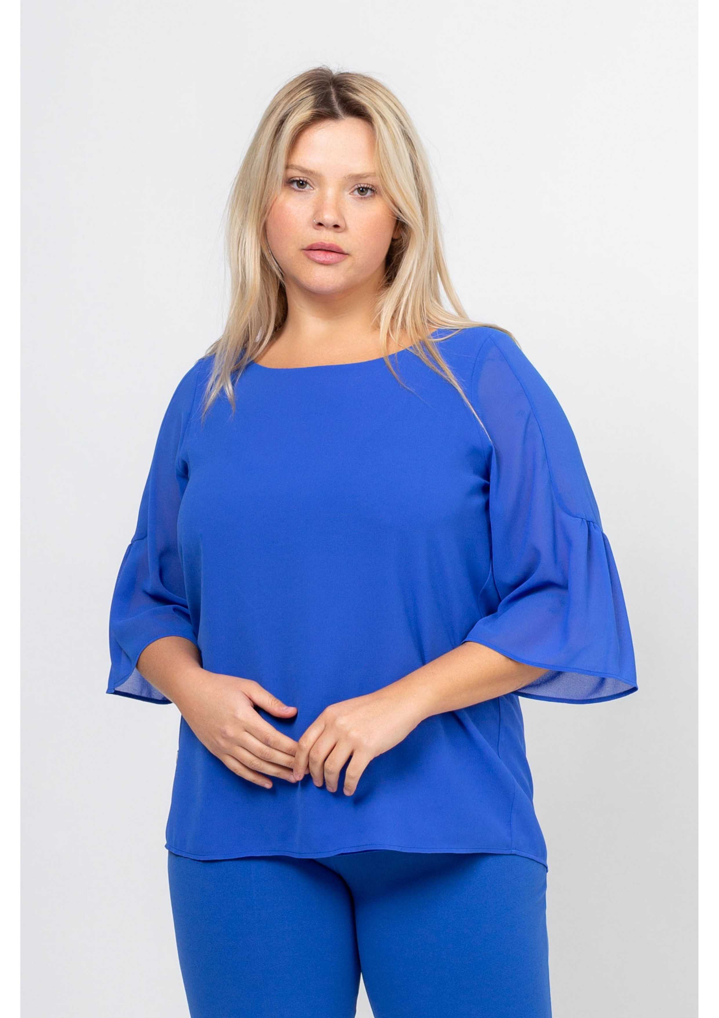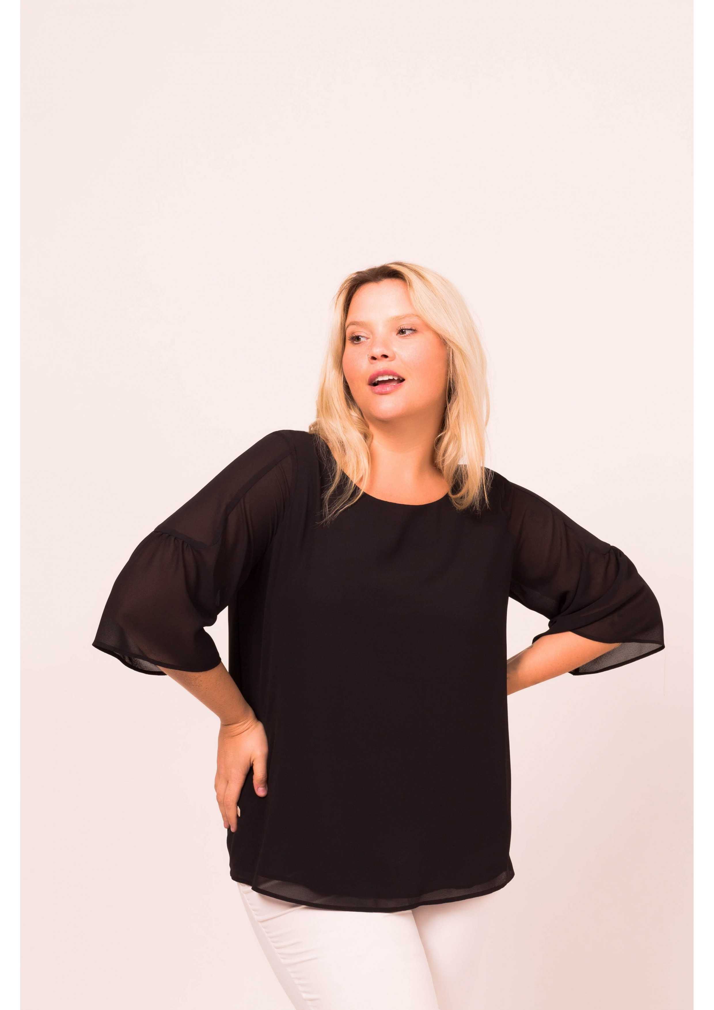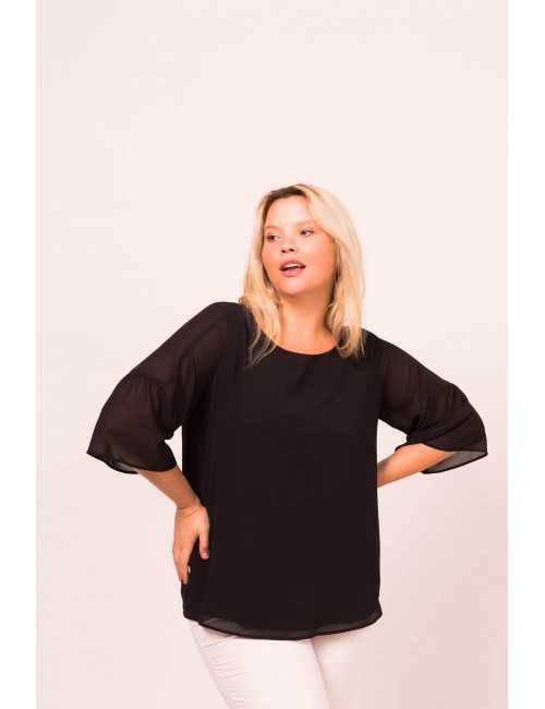 Tunique en tissu fluide, col rond, manches 3/4, avec un assemblage froncé. Collection : Printemps Été Disponible en Grandes Tailles Produit de conception et de fabrication propre. Nous sommes une marque de confection de vêtements avec plus de 50 ans d'expérience. Modèle : Hauteur 1,70 m et porte la taille 2XL. Composition : 100% Polyester
