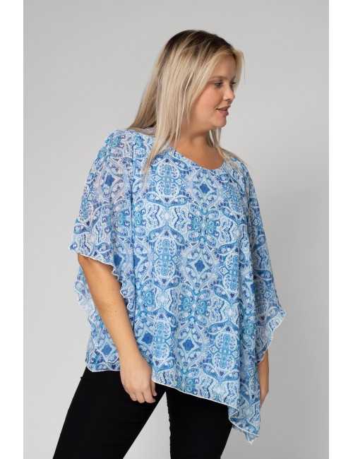 Tunique en tissu imprimé fluide, manches 3/4 avec fente, légèrement évasée avec pointe latérale. Collection : Printemps Été Disponible en Grandes Tailles Produit de design et fabrication propre. Nous sommes une marque de confection de vêtements avec plus de 50 ans d'expérience. Modèle : Taille 1.70m et porte la taille 2XL. Composition : 100% Polyester