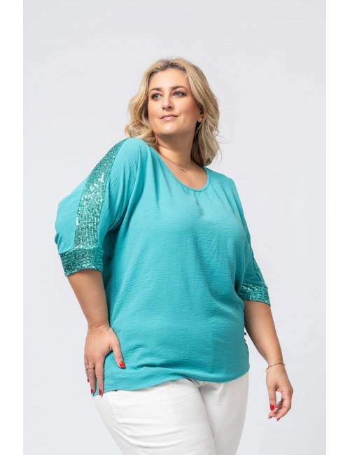 Tunique en tissu avec manches chauve-souris et paillettes, décolleté rond. Collection : Printemps Été Disponible en Grandes Tailles Produit de conception et fabrication propre. Nous sommes une marque de confection de vêtements avec plus de 50 ans d'expérience Modèle : Taille 1,65 m et porte la taille 3XL. Composition : 100% Polyester | 93% Polyester 7% Élasthanne