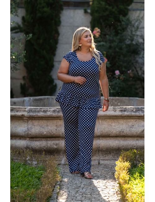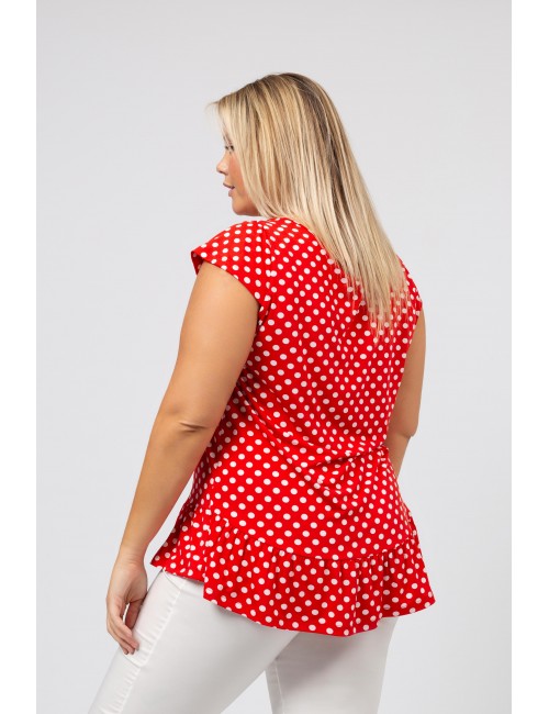 Tunique en maille imprimée avec des pois et décolleté rond avec volant de base. Collection : Printemps Été Disponible en Grandes Tailles Produit de conception et fabrication propre. Nous sommes une marque de confection de vêtements avec plus de 50 ans d'expérience. Modèle : Taille 1,70 m et porte la taille 2XL, en rouge et noir et vert. Modèle : Taille 1,65 m et porte la taille 3XL, en bleu marine. Composition : 96% Polyester 4% Élasthanne