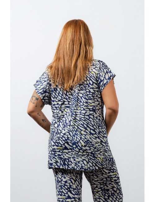 Tunique en maille imprimée, décolleté drapé. Coupe droite. Collection : Printemps Été Disponible en Tailles Grandes Produit de conception et fabrication propres. Nous sommes une marque de confection de vêtements avec plus de 50 ans d'expérience Modèle : Taille 1,70 m et porte la taille XL. Composition : 95% Polyester 5% Élasthanne