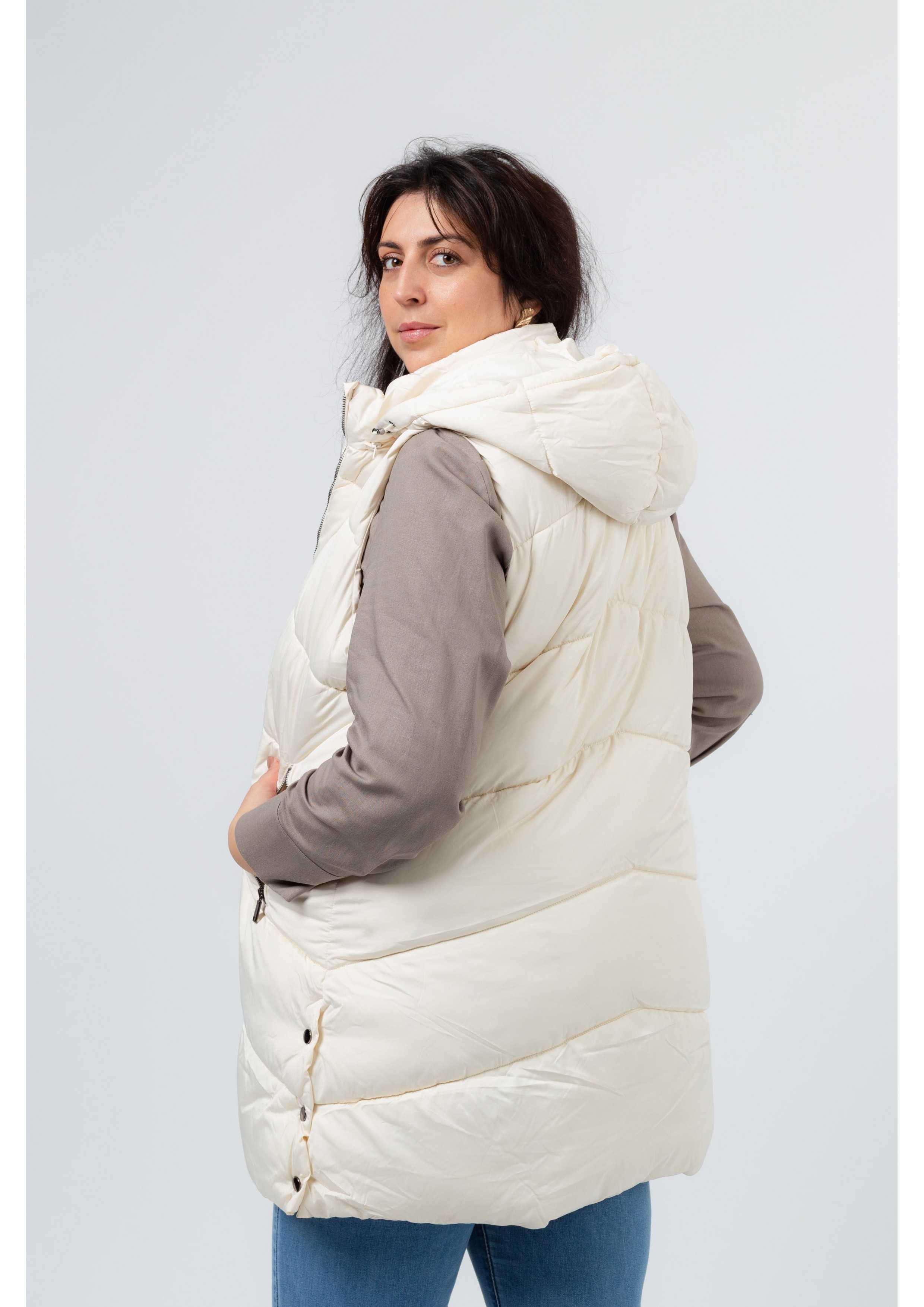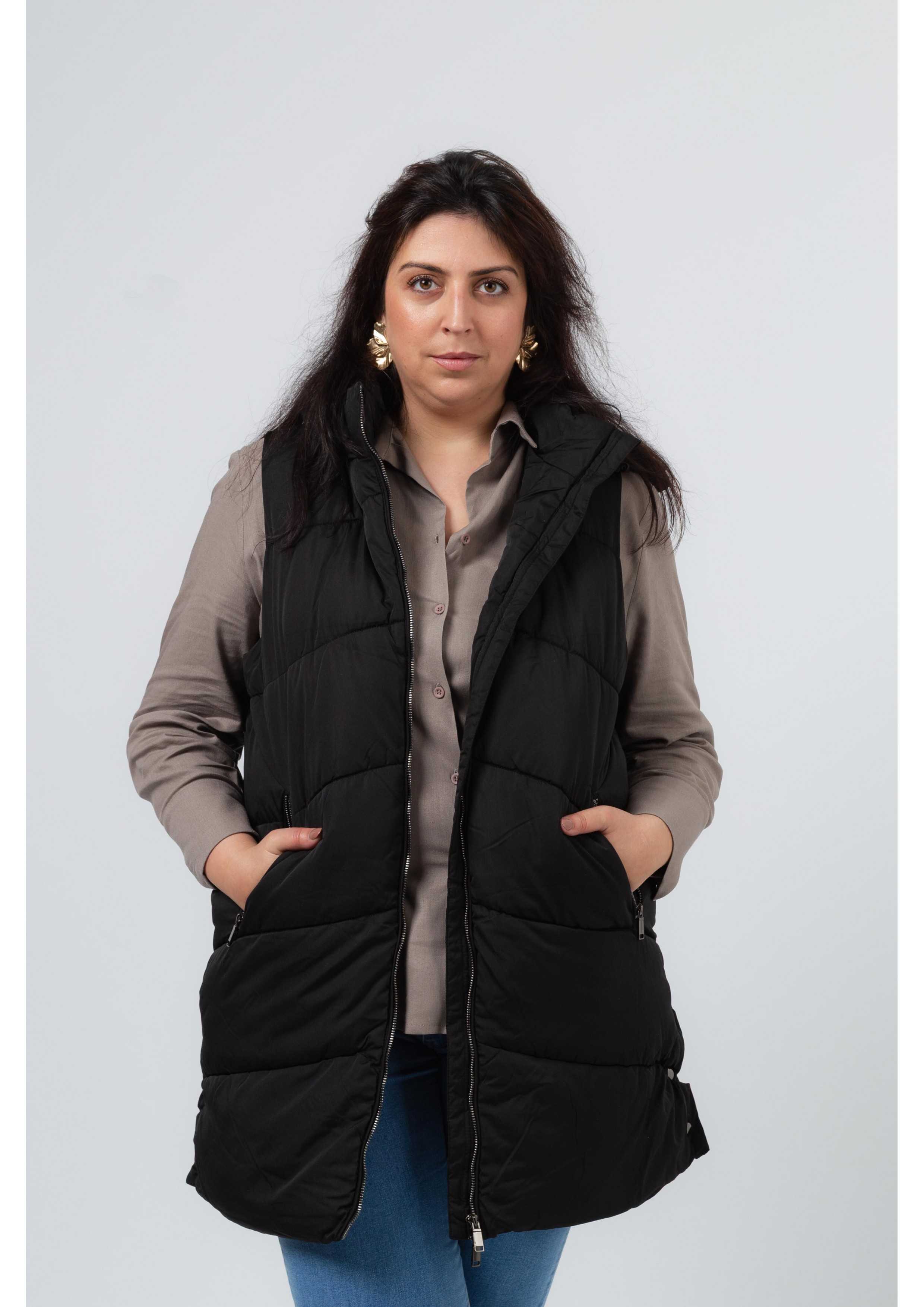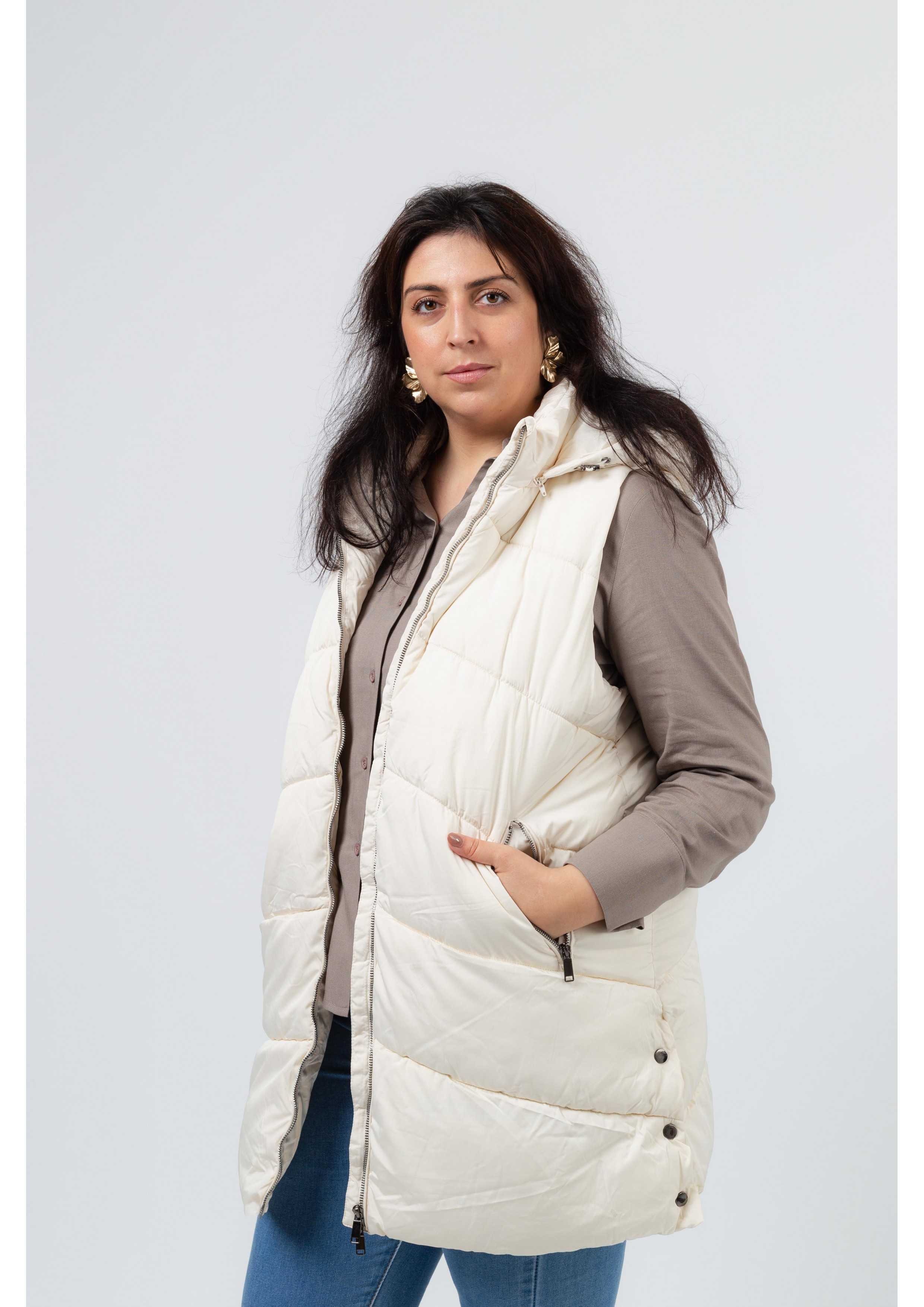 Colete em tecido liso Coleção: Primavera Verão Disponível em Tamanhos Grandes Somos uma marca de confeção de vestuário com mais de 50 anos de experiência Modelo: Altura 1.82m e está a vestir o tamanho 48.