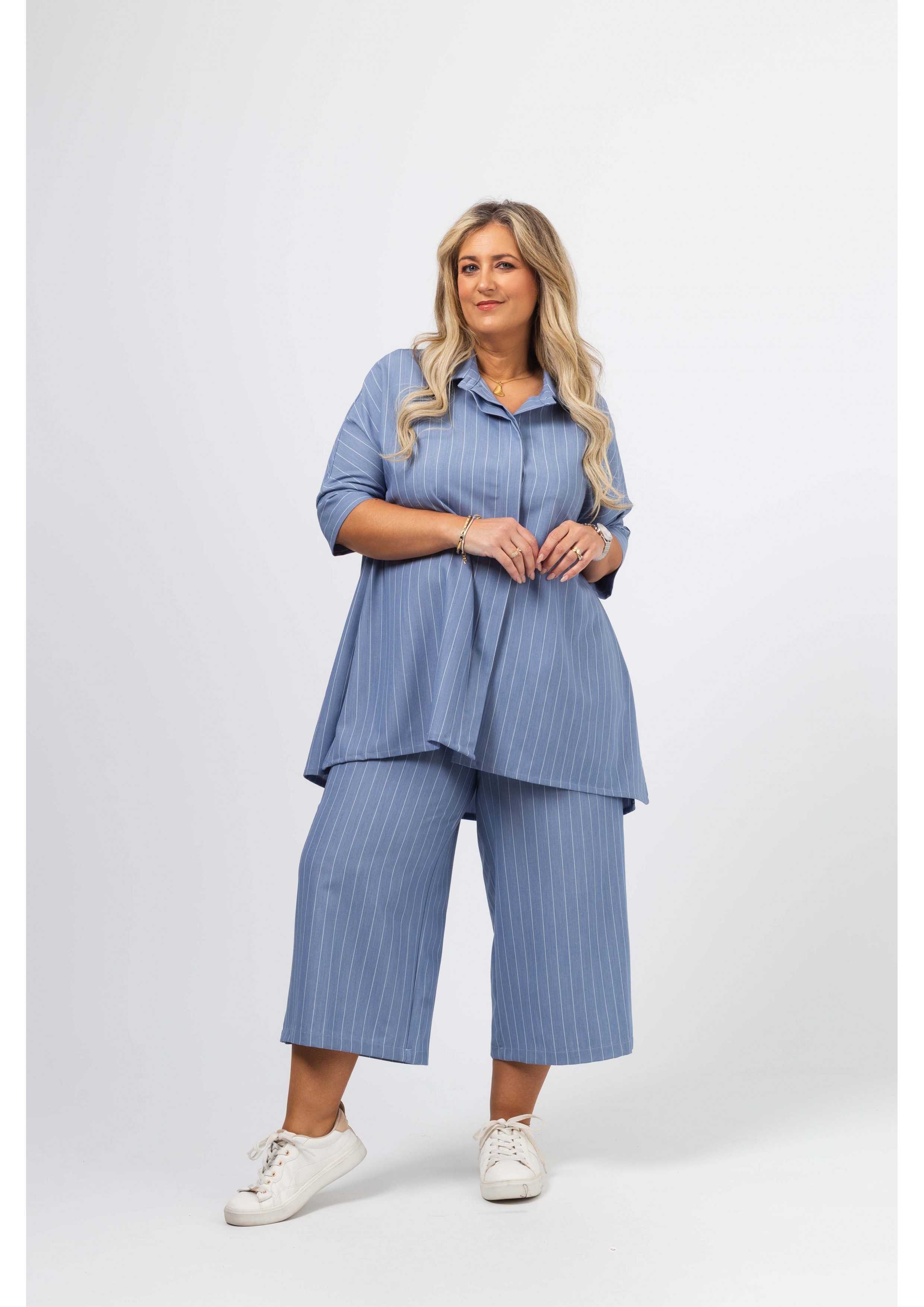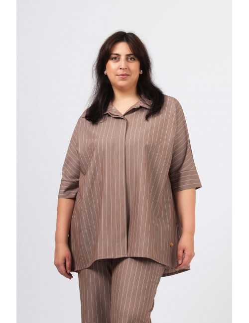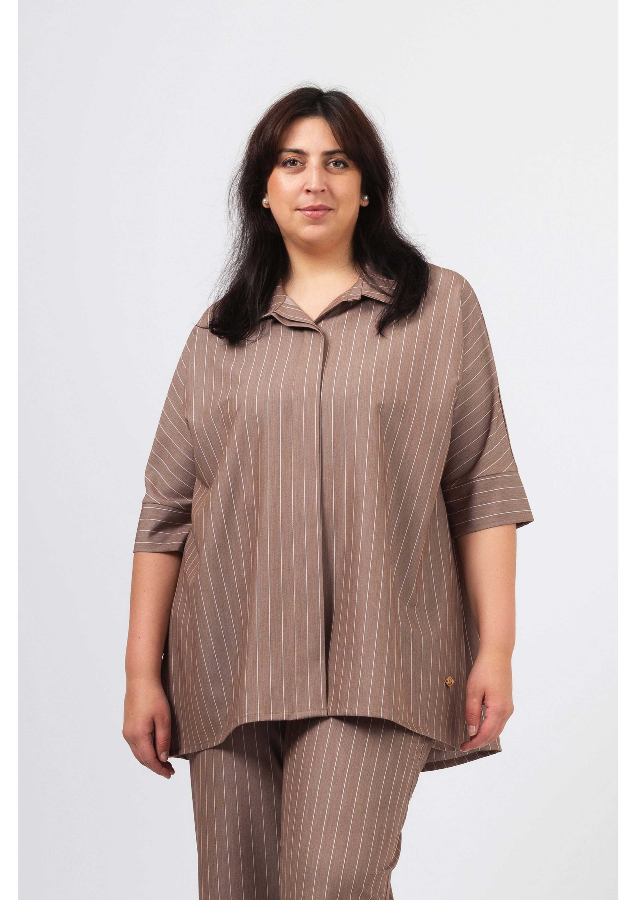 255038 - Blusa em tecido liso com risca vertical Coleção Primavera Verão Tamanhos Grandes