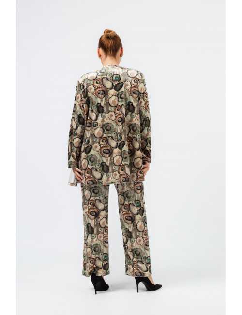 Calça em malha de veludo estampada, elástico na cintura recoberto. Disponível em Tamanhos Grandes Produto de desenho e fabrico próprio. Somos uma marca de confeção de vestuário com mais de 50 anos de experiência Modelo: Altura 1.70m e está a vestir o tamanho 2XL.