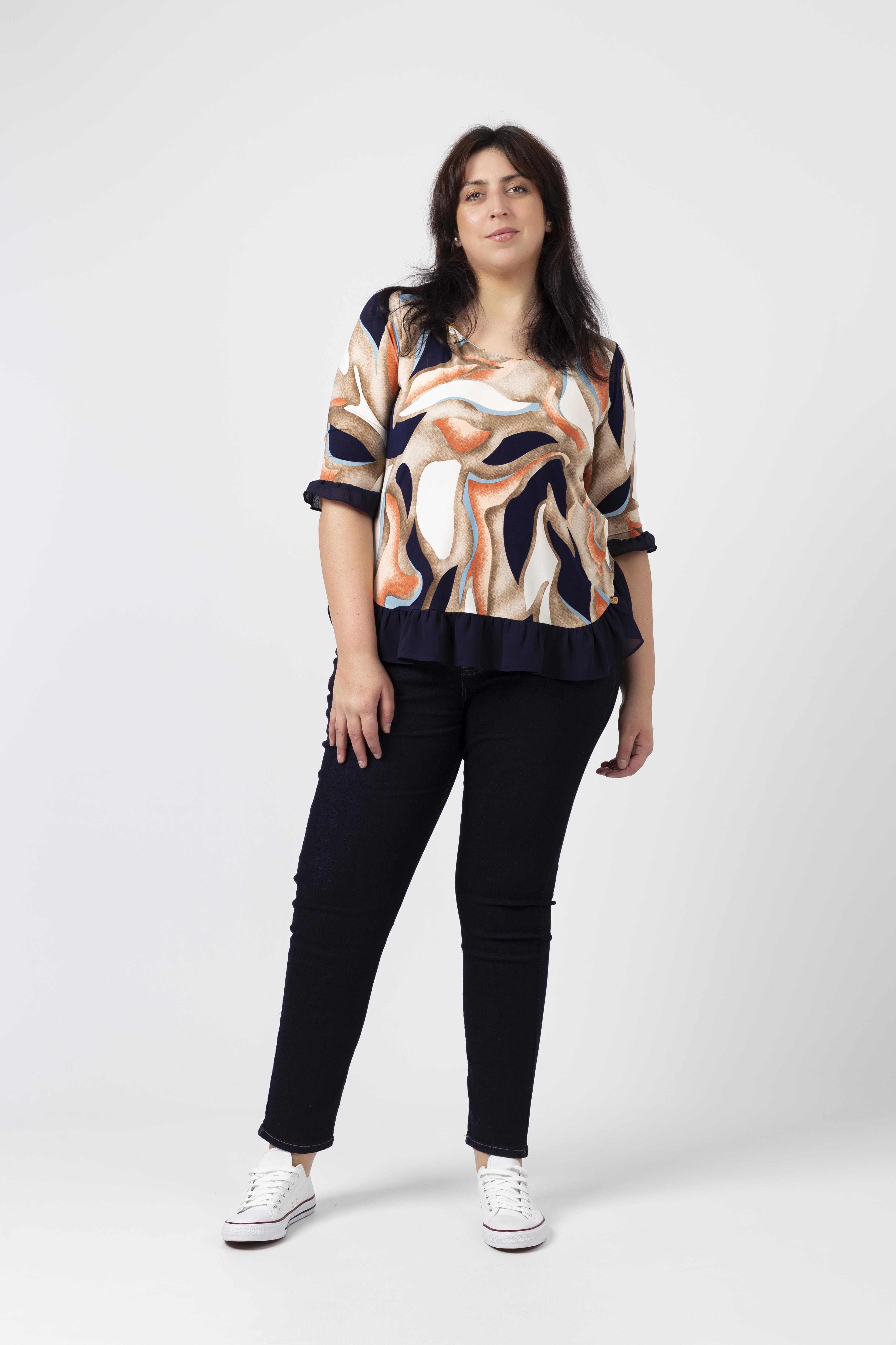 Calça de ganga com bolsos. Disponível em Tamanhos Grandes Somos uma marca de confeção de vestuário com mais de 50 anos de experiência Modelo: Altura 1.82m e está a vestir o tamanho 48. |