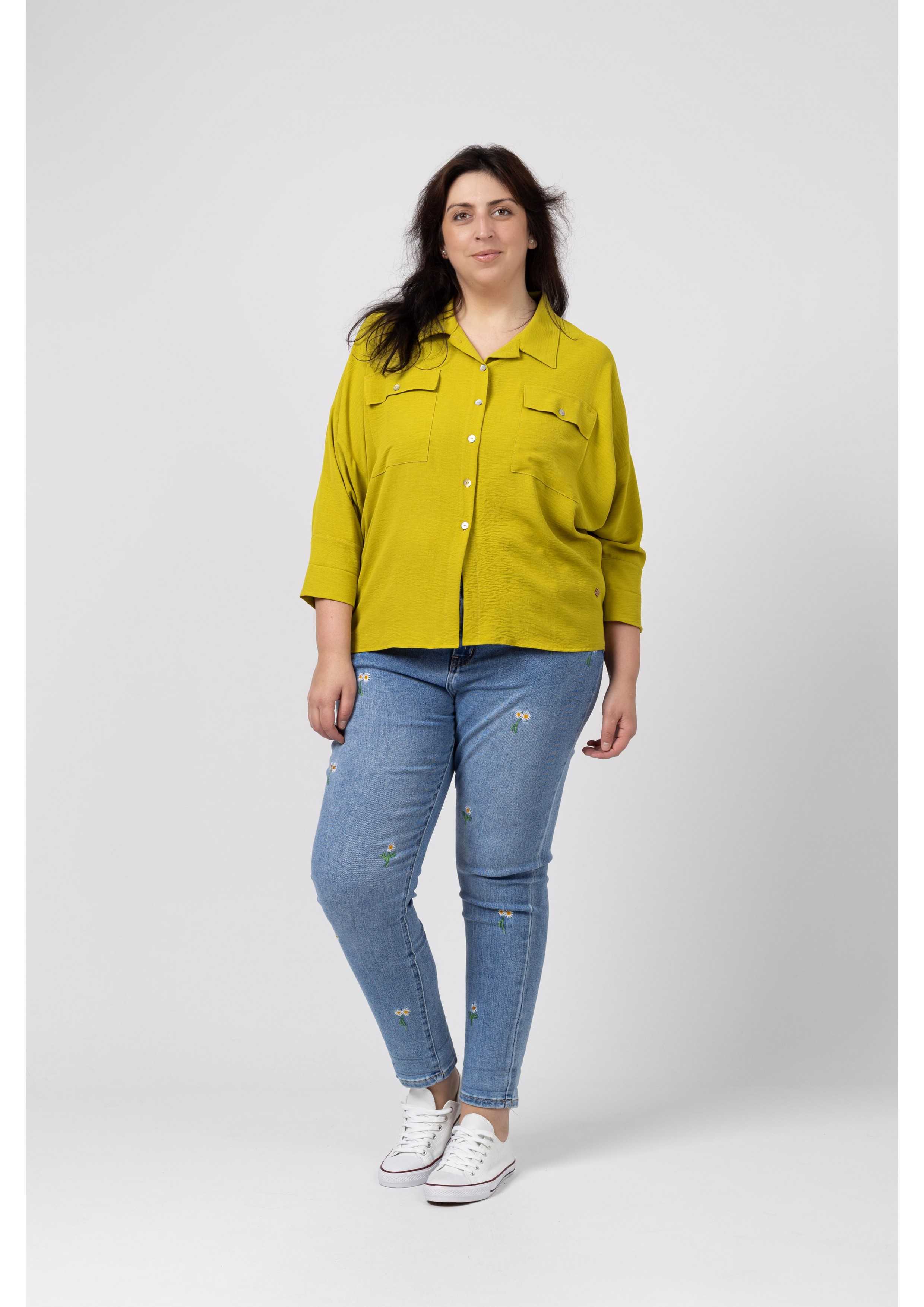 M120SA096 - Calça de ganga com bordado Coleção Primavera Verão Tamanhos Grandes