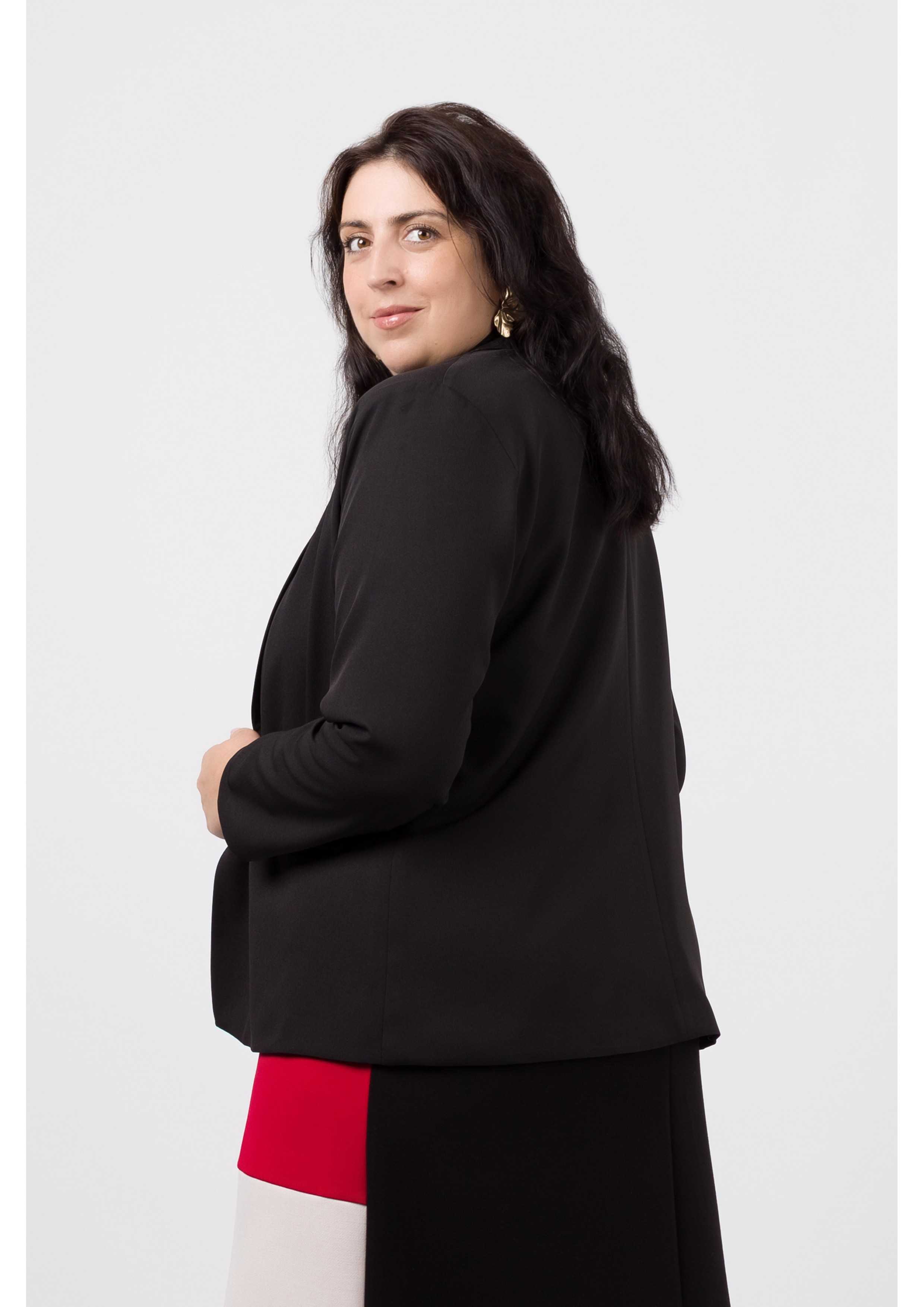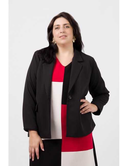 Blazer em tecido liso, bolsos laterais , virados. Corte ligeiramente cintado, aperta com 1 botão. Disponível em Tamanhos Grandes Produto de desenho e fabrico próprio. Somos uma marca de confeção de vestuário com mais de 50 anos de experiência Modelo: Altura 1.70m e está a vestir o tamanho 3XL.
